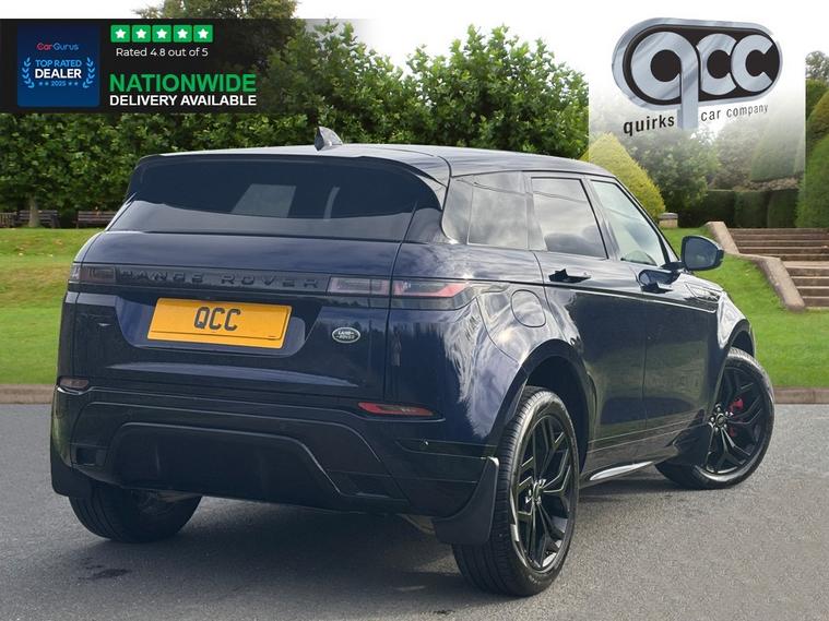 NATIONWIDE DELIVERY AVAILABLE, THIS AMZING EXAMPLE OF AN EVOQUE COMES WITH THE FOLLOWING SPECIFICATION, ELECTRIC SLIDING GLASS PANORAMIC ROOF, BLACK PACK, 20" ALLOYS FINISHED IN GLOSS BLACK, TOUCH SCREEN SAT NAV, ADAPTIVE CRUISE CONTROL, ELECTRIC HEATED MEMORY LUMBAR SUPPORT SEATS, REAR VIEW CAMERA, PRIVACY GLASS, APPLE CAR PLAY, ANDROID AUTO, BLUETOOTH, VOICE CONTROL, POWER BOOT, HEATED MULTI FUNCTION STEERING WHEEL, POWER FOLDING MIRRORS, FRONT AND REAR PARKING AID, VOICE CONTROL, AUTO LIGHTS, AIR CON CLIMATE, FOLDING REAR SEATS, ISOFIX ANCHOR POINTS, QUIRKS CAR COMPANY ARE VERY PROUD WINNERS OF RUNNER UP FOR AUTOTRADER RETAILER OF THE YEAR 2021, WINNERS OF AUTOTRADER HIGHLY RATED FOR OUR CUSTOMER SERVICE 2021/20, AND WINNERS OF CAR GURUS TOP RATED DEALER 2021/20/19. WE USE THIRD PARTY SOURCES TO OBTAIN STANDARD AND OPTIONAL FITTED FEATURES AND SPECIFICATIONS. WE CANNOT BE HELD LIABLE FOR ITS ACCURACY SO PLEASE VERIFY THESE DETAILS WHEN VIEWING THE VEHICLE PRIOR TO PURCHASE. YOU MUST PHYSICALLY CHECK THE SPECIFICATION OF THE VEHICLE ON SITE PRIOR TO PURCHASE.