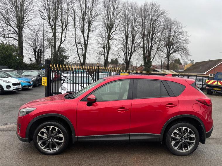 Experience the exceptional features of this 2016 Mazda CX-5, a stylish and efficient SUV that combines performance with comfort. With its striking red exterior and 19-inch gunmetal alloy wheels, this vehicle not only stands out on the road but also offers a smooth and enjoyable drive. The dual-zone climate control air conditioning ensures that all passengers remain comfortable, no matter the weather outside. Service history: Five services to 70k, Spare key Safety is paramount in the Mazda CX-5, equipped with an Anti-Lock Braking System (ABS) and an adjustable speed limiter, providing peace of mind for every journey. The dusk sensing automatic headlights enhance visibility during low light conditions, making nighttime driving safer and more convenient. Additionally, this SUV is designed for convenience with features such as a 12V power socket in the cargo area, perfect for charging devices on the go. The cruise control feature allows for a relaxed driving experience on longer journeys, making it ideal for both city and motorway travel. Don't miss out on this fantastic opportunity to own a reliable and stylish Mazda CX-5. Contact us to book a test drive today, or call 01215403169 today! HASBURY MOTORS JUST OFF J3 M5. 70 STOURBRIDGE Rd HALESOWEN B63 3UP. DIRECT NUMBER 07977. 577. 206