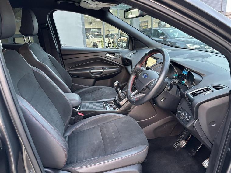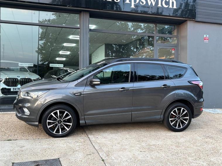 This 2019 Ford Kuga T ST-Line is presented with a clear vehicle history, offering you peace of mind. This Euro 6 compliant model features a 1.5 litre petrol engine and comes in the sporty ST-Line trim. You'll appreciate the convenience of Enhanced Active Park Assist, which includes front and rear parking sensors, alongside dedicated rear parking sensors to make manoeuvring effortless. Inside, the Ford SYNC3 DAB Navigation System keeps you connected and on course, offering both Android Auto and Apple CarPlay compatibility, as well as Bluetooth connectivity. For your comfort, the DEATC Dual-Zone Electronic Automatic Temperature Control ensures the cabin climate is perfectly regulated for all occupants. The Kuga T ST-Line stands out with its combination of advanced technology and driver focused features. The inclusion of the sophisticated Ford SYNC3 system with navigation and smartphone integration, along with the comprehensive parking assistance suite, elevates your driving experience beyond that of many other vehicles in its class. This particular model's clear vehicle history further enhances its appeal, assuring you of its well maintained condition.