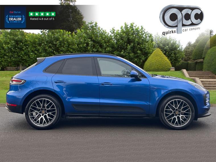 NATIONWIDE DELIVERY AVAILABLE! THIS PORSCHE MACAN 2.0T FINISHED IN SAPPHIRE BLUE WITH BLACK LEATHER BENEFITS FROM THE FOLLOWING SPECIFICATION, ELECTRIC PANORAMIC GLASS SUNROOF WITH ELECTRIC BLIND, 21" ALLOYS, PASM (PORSCHE ACTIVE SUSPENSION MANAGEMENT), BOSE SOUND SYSTEM, TOUCH SCREEN WITH SAT NAV, REAR VIEW REVERSE CAMERA, HEATED M/F/S/WHEEL WITH CRUISE CONTROL, PADDLE SHIFT AND VOICE CONTROL, ELECTRIC HEATED MEMORY COMFORT SEATS WITH LUMBAR SUPPORT, PORSCHE CREST ON FRONT HEAD RESTS, PIANO BLACK INTERIOR TRIM, ELECTRIC STEERING COLUMN, ELECTRIC FOLDING EXTERIOR MIRRORS, FRONT AND REAR PARK DISTANCE CONTROL, 3x ZONE AIR CON CLIMATE CONTROL WITH REAR AIR CON, AUTOMATICALLY DIMMING REAR VIEW MIRROR, AUTOMATIC HEAD LIGHTS, BLUETOOTH PHONE PREP, COMPASS DISPLAY ON DASHBOARD, POWER TAIL GATE/BOOT LID, PRIVACY GLASS, ISOFIX POINTS, ROOF RAILS, CENTRE ARM REST, PAN ROOF, QUIRKS CAR COMPANY ARE VERY PROUD WINNERS OF RUNNER UP FOR AUTOTRADER RETAILER OF THE YEAR 2021, WINNERS OF AUTOTRADER HIGHLY RATED FOR OUR CUSTOMER SERVICE 2021/20, AND WINNERS OF CAR GURUS TOP RATED DEALER 2021/20/19. WE USE THIRD PARTY SOURCES TO OBTAIN STANDARD AND OPTIONAL FITTED FEATURES AND SPECIFICATIONS. WE CANNOT BE HELD LIABLE FOR ITS ACCURACY SO PLEASE VERIFY THESE DETAILS WHEN VIEWING THE VEHICLE PRIOR TO PURCHASE. YOU MUST PHYSICALLY CHECK THE SPECIFICATION OF THE VEHICLE ON SITE PRIOR TO PURCHASE.