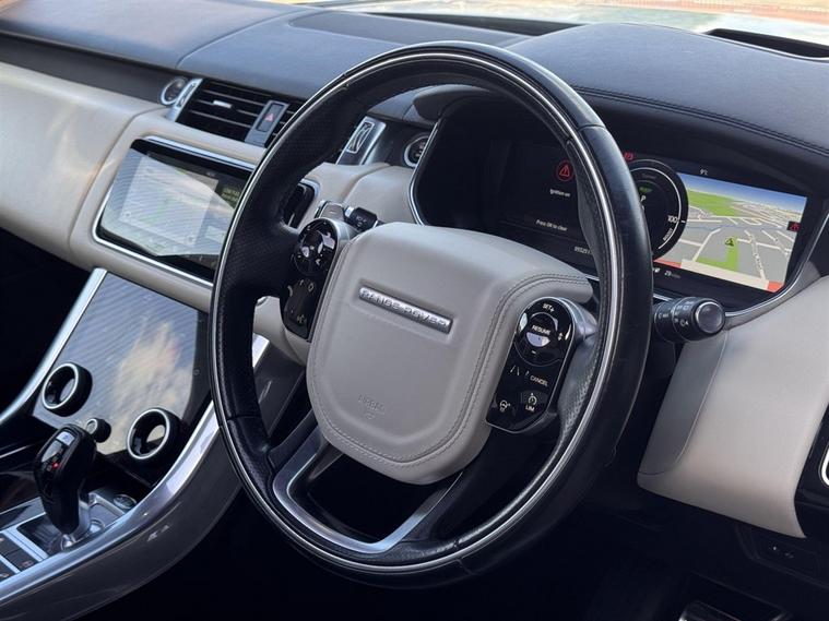 This Range Rover Sport P400e Autobiography Dynamic Finished in Fuji White and this vehicle comes with the following specification: 21in Alloy Wheels - 9 Spoke Style 9001 | Semi Aniline Perforated Leather - Ebony & Ivory | Pixel-Laser LED Headlights | Park Pro Pack | Head-Up Display | Meridian Sound System | TV- Digital | Privacy Glass | 22-way Memory Front Seats with Winged Headrests | Grand Black Vaneer | Four-Zone Climate Control | Front Centre Console Refridgerator Compartment | Heated & Ventillated Front & Rear Seats | Soft Close Doors | Electric Deployable Side Steps | Black Pack | Navigation | Bluetooth Audio & Connectivity | DAB & Radio |Apple CarPlay | Full Land Rover History | 2 Keys | Ambient Lighting