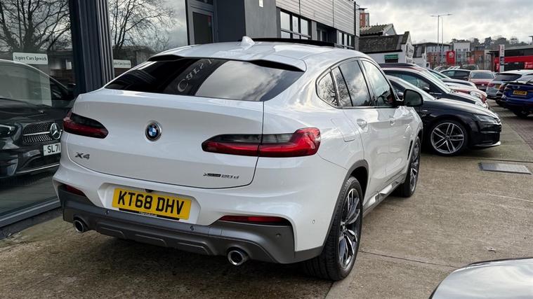 NOW Deposit Taken, ... Coupe Style SUV | This 2018 BMW X4 20d M Sport X | Panorama glass roof Sunroof | Four wheel Drive | High-beam assistant & Adaptive LED headlight| The M Sport X trim | M Sport Plus Package | M Sport Braking System for a more dynamic driving experience| Electric folding mirrors |Harman Kardon Surround Audio Sound System comfortable | Digital Cockpit | Rear view camera |DAB tuner Wireless Apple Carplay | Full Leather - Black heated seat | 20in Alloy Wheels - M Light Double-spoke Style 787 M with Mixed Tyres | 8 Speed Automatic transmission w/ shift paddles | 2 Previous owner Full Service History | HPI Certificate Supplied | ULEZ Vehicle |Finance Available From 9.9% APR Representative | We give you a Peace of mind 6 months warranty ( Nationwide warranty ) ( Extended Warranty available up to 3 years )) Part exchanges considered |5 Days Drive Away (fee apply) | FINANCE INFORMATION PLEASE SEE OUR WEBSITE dealer's website | High gloss shadow line| Larger fuel tank| Electric Power boot Comfort is assured with automatic air conditioning, including climate control, and convenience is elevated by a reversing assist camera that works in conjunction with rear parking assistance. The rain sensor automatically activates the headlights, adding to the ease of driving. This BMW X4 also offers a generous boot space, making it practical for everyday use and longer journeys. Its performance is noteworthy, achieving 0 to 62 miles per hour in just 8.0 seconds, demonstrating a strong balance between efficiency and acceleration that sets it apart from many similar vehicles.