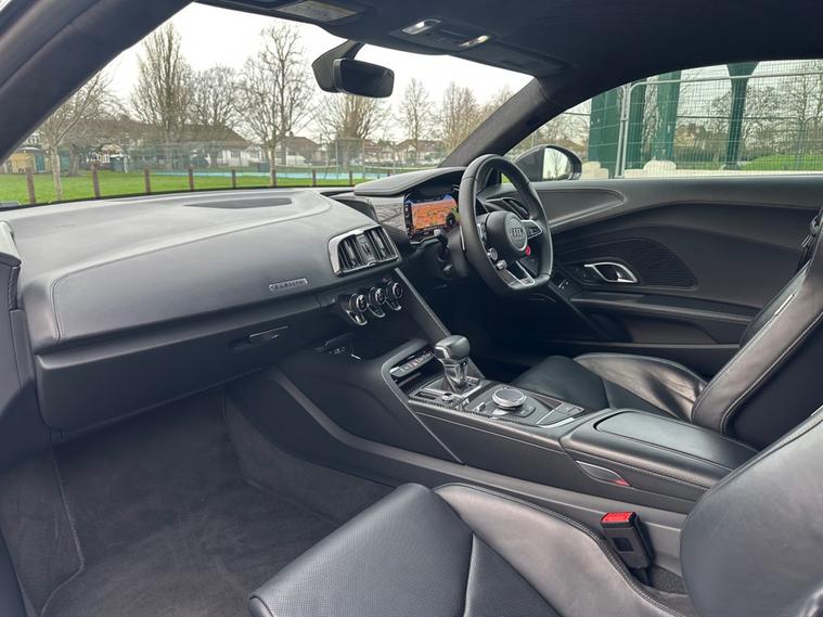 Full PPF, R8 Styling, Performance Carbon Black Edition, V10, Quattro Drive, Sport Exhaust, Sport Suspension, Carbon Fibber Side Blades, Audi Virtual Cockpit, SAT NAV, Bang & Olufsen Sound System, LED Headlight, LED Day time Running Lights, 20" Gloss Black V Spoke Alloy Wheels, Red Brake Callipers, Ceramic Brake Discs, Reversing Camera, Front & Rear Parking Sensors, Bluetooth, Start-Stop System, Audi Drive Select, Alcantara Diamond Stitch Headlining, Bucket Black Fine Nappa Leather, Sport Seats, Heated Seats, Lumber Support Seats, Black Trim, Automatic Air Conditioning, Climate Control, R8 3 Spoke Multifunction Steering Wheel, Paddle Shift, Electric Windows, Automatic Headlights, Automatic Wipers, Headlight Washers, Electric Folding Door Mirrors, Electric Door Mirrors, Heated Door Mirrors, Tyre Pressure Monitoring System, Trip Computer, Remote Central Locking, One Previous Owner, Full Service History. Full Dealer Facilities. HPI Clear. Debit Cards Accepted. Part Exchange Welcome. FINANCE AVAILABLE on request.