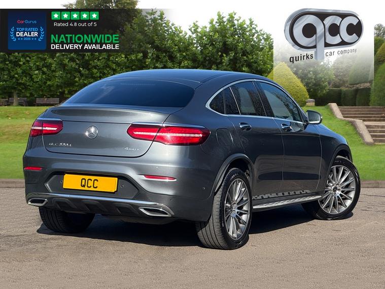 NATIONWIDE DELIVERY AVAILABLE! THIS MERCEDES GLC220d 2.1 AMG LINE FINISHED IN SELENITE GREY METALLIC WITH BLACK LEATHER BENEFITS FROM THE FOLLOWING SPECIFICATION, PREMIUM PACKAGE, ELECTRIC GLASS SUNROOF WITH BLIND, 20" ALLOYS, RUNNING BOARDS, DYNAMIC DRIVING MODES, SAT NAV, REAR VIEW REVERSE CAMERA, M/F/S/WHEEL WITH CRUISE CONTROL, PADDLE SHIFT AND VOICE CONTROL, ELECTRIC HEATED MEMORY SPORTS SEATS WITH LUMBAR SUPPORT, ELECTRIC STEERING COLUMN, ELECTRIC FOLDING EXTERIOR MIRRORS, FRONT AND REAR PARK DISTANCE CONTROL, DUAL ZONE AIR CON CLIMATE CONTROL, AUTOMATICALLY DIMMING REAR VIEW MIRROR, AUTOMATIC HEAD LIGHTS, LED HIGH PERFORMANCE HEAD LIGHTS, BLUETOOTH PHONE PREP, POWER TAIL GATE/BOOT LID, PRIVACY GLASS, ISOFIX POINTS, CENTRE ARM REST, QUIRKS CAR COMPANY ARE VERY PROUD WINNERS OF RUNNER UP FOR AUTOTRADER RETAILER OF THE YEAR 2021, WINNERS OF AUTOTRADER HIGHLY RATED FOR OUR CUSTOMER SERVICE 2021/20, AND WINNERS OF CAR GURUS TOP RATED DEALER 2021/20/19. WE USE THIRD PARTY SOURCES TO OBTAIN STANDARD AND OPTIONAL FITTED FEATURES AND SPECIFICATIONS. WE CANNOT BE HELD LIABLE FOR ITS ACCURACY SO PLEASE VERIFY THESE DETAILS WHEN VIEWING THE VEHICLE PRIOR TO PURCHASE. YOU MUST PHYSICALLY CHECK THE SPECIFICATION OF THE VEHICLE ON SITE PRIOR TO PURCHASE.