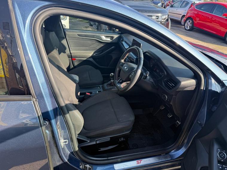 Ford Focus 1.5 TDCi ST-Line in metallic blue. An absolutely gorgeous example, in fantastic condition both inside and out. Comes with Full Service History, as you can imagine it drives incredibly well. This 2020 model is powered by a 1.5L diesel engine, ensuring you get impressive fuel economy with a combined consumption of 61.4mpg. The sleek blue exterior and 5-door design make it a practical choice for both city driving and longer journeys. Big spec too including Apple Car Play/Android Auto, Bluetooth Hands Free, Bluetooth Audio Streaming, DAB Radio, USB, Cruise Control, Parking Sensors, A/C, Alloy Wheels etc. Don't miss out on this fantastic vehicle; contact us to book a test drive today, or call 02921223506 today.