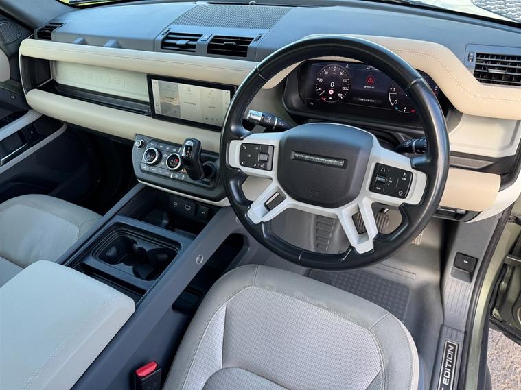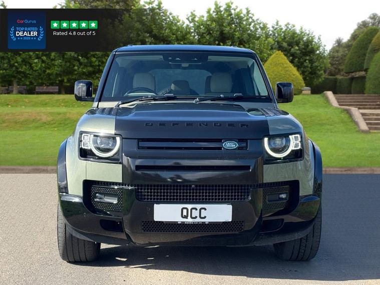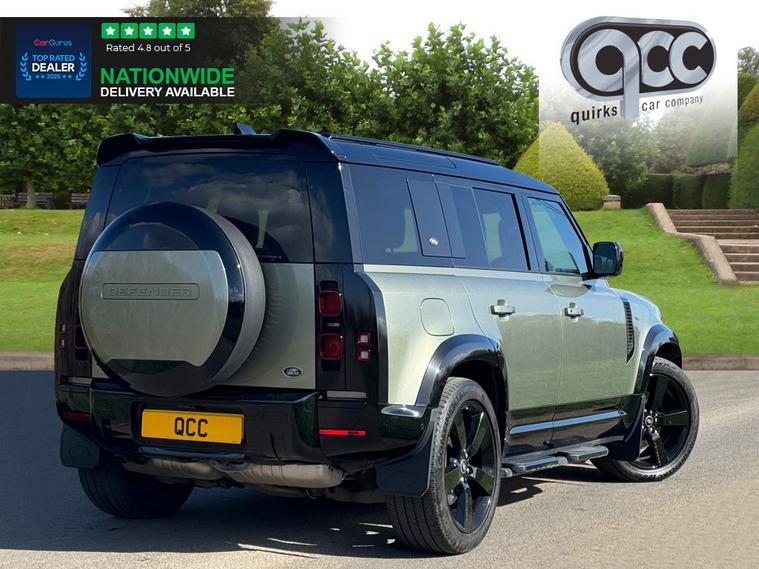 NATIONWIDE DELIVERY AVAILABLE! THIS LAND ROVER DEFENDER 110 2.0 SD4 FIRST EDITION FINISHED IN PANGEA GREEN WITH ACORN LEATHER BENEFITS FROM THE FOLLOWING SPECIFICATION, BODY STYLING KIT INCLUDING EXTENDED WIDE WHEEL ARCHES IN GLOSS BLACK, BOOT SPOILER, GLOSS BLACK BONNET, BLACK PACK, SIDE STEPS, ELECTRIC PANORAMIC GLASS SUNROOF WITH ELECTRIC BLIND, 22" GLOSS BLACK ALLOYS, ADJUSTABLE AIR SUSPENSION, MERIDIAN SOUND SYSTEM, FRIDGE/COOL BOX, 10" INFOTAINMENT TOUCH SCREEN WITH SAT NAV, REAR VIEW REVERSE CAMERA, 360 CAMERA, DIGITAL DASH, DEPLOYABLE TOW BAR, BLACK PAINTED ROOF, HEATED M/F/S/WHEEL WITH CRUISE CONTROL AND VOICE CONTROL, 14 WAY ELECTRIC HEATED MEMORY SEATS WITH LUMBAR SUPPORT, HEATED WIND SCREEN, ELECTRIC STEERING COLUMN, FRONT AND REAR PARK DISTANCE CONTROL, DUAL ZONE AIR CON CLIMATE CONTROL, CLEAR SIGHT REAR VIEW MIRROR, AUTOMATIC HEAD LIGHTS, BLUETOOTH PHONE PREP, APPLE CARPLAY, ANDROID AUTO, PRIVACY GLASS, ROOF RAILS, ISOFIX POINTS, CENTRE ARM REST, PAN ROOF, BODYKIT, BODYSTYLING, QUIRKS CAR COMPANY ARE VERY PROUD WINNERS OF RUNNER UP FOR AUTOTRADER RETAILER OF THE YEAR 2021, WINNERS OF AUTOTRADER HIGHLY RATED FOR OUR CUSTOMER SERVICE 2021/20, AND WINNERS OF CAR GURUS TOP RATED DEALER 2021/20/19. WE USE THIRD PARTY SOURCES TO OBTAIN STANDARD AND OPTIONAL FITTED FEATURES AND SPECIFICATIONS. WE CANNOT BE HELD LIABLE FOR ITS ACCURACY SO PLEASE VERIFY THESE DETAILS WHEN VIEWING THE VEHICLE PRIOR TO PURCHASE. YOU MUST PHYSICALLY CHECK THE SPECIFICATION OF THE VEHICLE ON SITE PRIOR TO PURCHASE.