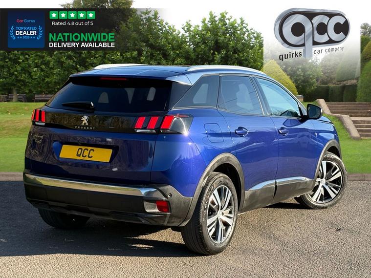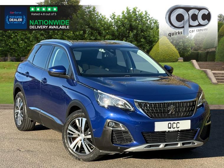 NATIONWIDE DELIVERY AVAILABLE! THIS PEUGEOT 3008 1.2 PURETECH ALLURE FINISHED IN MAGNETIC BLUE WITH HALF BLACK LEATHER BENEFITS FROM THE FOLLOWING SPECIFICATION, 18" ALLOYS, SAT NAV, REAR VIEW REVERSE CAMERA, M/F/S/WHEEL WITH CRUISE CONTROL AND VOICE CONTROL, FRONT AND REAR PARK DISTANCE CONTROL, AUTOMATICALLY DIMMING REAR VIEW MIRROR, BLUETOOTH PHONE PREP, PRIVACY GLASS, ISOFIX POINTS, ROOF RAILS, CENTRE ARM REST, QUIRKS CAR COMPANY ARE VERY PROUD WINNERS OF RUNNER UP FOR AUTOTRADER RETAILER OF THE YEAR 2021, WINNERS OF AUTOTRADER HIGHLY RATED FOR OUR CUSTOMER SERVICE 2021/20, AND WINNERS OF CAR GURUS TOP RATED DEALER 2021/20/19. WE USE THIRD PARTY SOURCES TO OBTAIN STANDARD AND OPTIONAL FITTED FEATURES AND SPECIFICATIONS. WE CANNOT BE HELD LIABLE FOR ITS ACCURACY SO PLEASE VERIFY THESE DETAILS WHEN VIEWING THE VEHICLE PRIOR TO PURCHASE. YOU MUST PHYSICALLY CHECK THE SPECIFICATION OF THE VEHICLE ON SITE PRIOR TO PURCHASE.