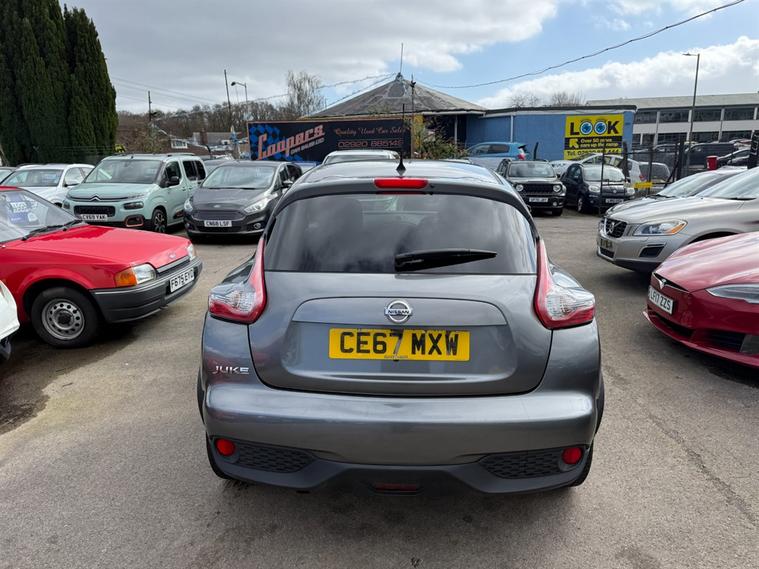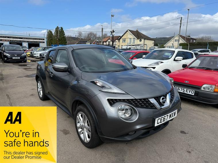 Nissan Juke 1.2 Acenta in metallic grey. A lovely example, just 58k miles from brand new. This 2017 hatchback stands out with its striking grey exterior and practical five-door design, making it an ideal choice for both city driving and weekend getaways. Enjoy the benefits of alloy wheels that not only enhance the vehicle's appearance but also contribute to a smoother ride. Good spec too including Bluetooth Hands Free, Bluetooth Audio Streaming, Climate Control, A/C, Alloy Wheels, USB etc. Don't miss out on this fantastic opportunity to own a stylish and versatile vehicle. Contact us to book a test drive today or call 02921223506.