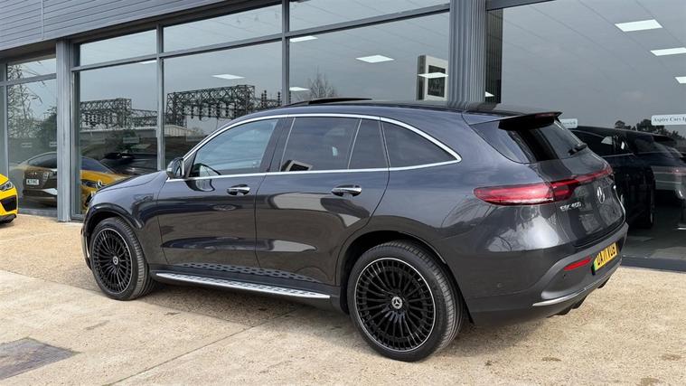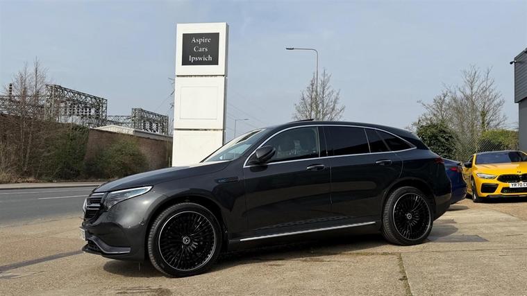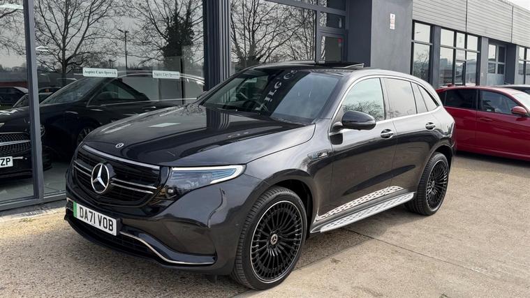 8.9% APR Representative !This 2021 Mercedes-Benz EQC 400 AMG Line (Premium Plus) | Sunroof |Four Wheel Drive |Head-up Display | Blind Spot Monitoring |360 camera |Active Lane Keeping Assist (camera) | Ambient lighting | Midline Sound system |Memory Package |Apple Carplay Android Auto smartphone |Four wheel drive SUV, it offers an impressive 88 kWh battery with a maximum range of 244 miles when new | AMG multi-spoke wheels 21" "all-round"Mirror package| VAT Qualifying | 1 Owner with Full Service History | HPI Certificate Supplied| Finance Available From 8.9% APR Representative | We give you a Peace of mind 6 months warranty ( Nationwide warranty ) ( Extended warranty available up to 3 years ) Part exchanges considered |Finance information: Please visit our website for full details dealer's website leather | 195 ROAD TAX