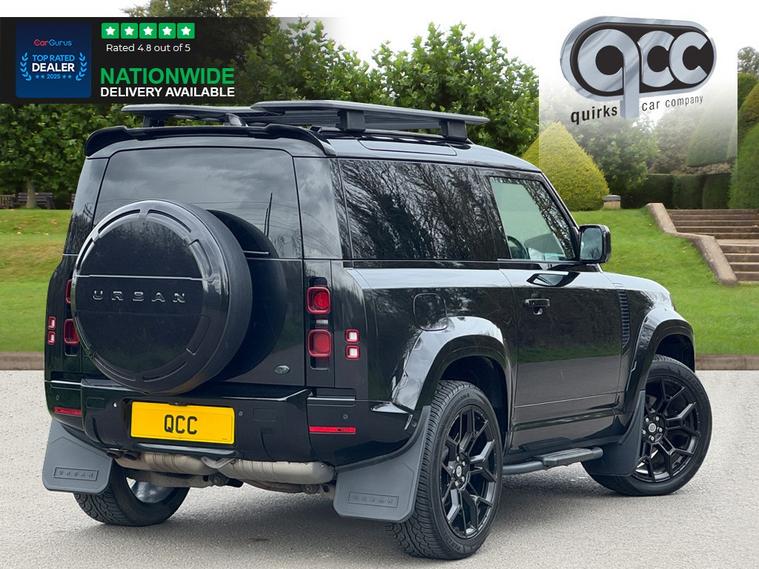 VAT QUALIFYING SO PRICE IS 49, 950 + VAT!! NATIONWIDE DELIVERY AVAILABLE! THIS 1 OWNER LAND ROVER DEFENDER 90 3.0 D250 MHEV SE HARD TOP COMMERCIAL FINISHED IN SANTORINI BLACK WITH BLACK LEATHER BENEFITS FROM THE FOLLOWING SPECIFICATION, MODIFIED BY URBAN AUTOMOTIVE INCLUDING URBAN AUTOMOTIVE WIDETRACK BODY STYLING KIT WITH EXTENDED WHEEL ARCHES, 22" URBAN AUTOMOTIVE UV-4 VOSSEN STYLE ALLOYS, URBAN BRANDING PACK, URBAN BADGING, BLACK ROOF SPOILER, ROOF RACK, SIDE STEPS, URBAN SPARE WHEEL COVER, URBAN MUD FLAPS, REAR SEAT CONVERSION CAN BE ADDED TO THIS VEHICLE AT ADDITIONAL COST TO MAKE IT 5 SEATS! MERIDIAN SOUND SYSTEM, 10" INFOTAINMENT TOUCH SCREEN WITH SAT NAV, REAR VIEW REVERSEW CAMERA, 360 CAMERA, ELECTRIC DEPLOYABLE TOWBAR, HEATED M/F/S/WHEEL WITH CRUISE CONTROL AND VOICE CONTROL, ELECTRIC HEATED MEMORY SEATS WITH LUMBAR SUPPORT, HEATED WIND SCREEN, FRONT AND REAR PARK DISTANCE CONTROL, ELECTRIC FOLDING EXTERIOR MIRRORS, DUAL ZONE AIR CON CLIMATE CONTROL, AUTOMATICALLY DIMMING REAR VIEW MIRROR, AUTOMATIC HEAD LIGHTS, BLUETOOTH PHONE PREP, APPLE CARPLAY, ANDROID AUTO, PRIVACY GLASS, ROOF RAILS, QUIRKS CAR COMPANY ARE VERY PROUD WINNERS OF RUNNER UP FOR AUTOTRADER RETAILER OF THE YEAR 2021, WINNERS OF AUTOTRADER HIGHLY RATED FOR OUR CUSTOMER SERVICE 2021/20, AND WINNERS OF CAR GURUS TOP RATED DEALER 2021/20/19. WE USE THIRD PARTY SOURCES TO OBTAIN STANDARD AND OPTIONAL FITTED FEATURES AND SPECIFICATIONS. WE CANNOT BE HELD LIABLE FOR ITS ACCURACY SO PLEASE VERIFY THESE DETAILS WHEN VIEWING THE VEHICLE PRIOR TO PURCHASE. YOU MUST PHYSICALLY CHECK THE SPECIFICATION OF THE VEHICLE ON SITE PRIOR TO PURCHASE. BODYSTYLING, BODYKIT, SIMILAR TO OVERFINCH, KAHN, ONYX, REVERE, EVOLVED, LUMMA, CHELSEA TRUCK CO, ABT, MAXTON DESIGN ETC,