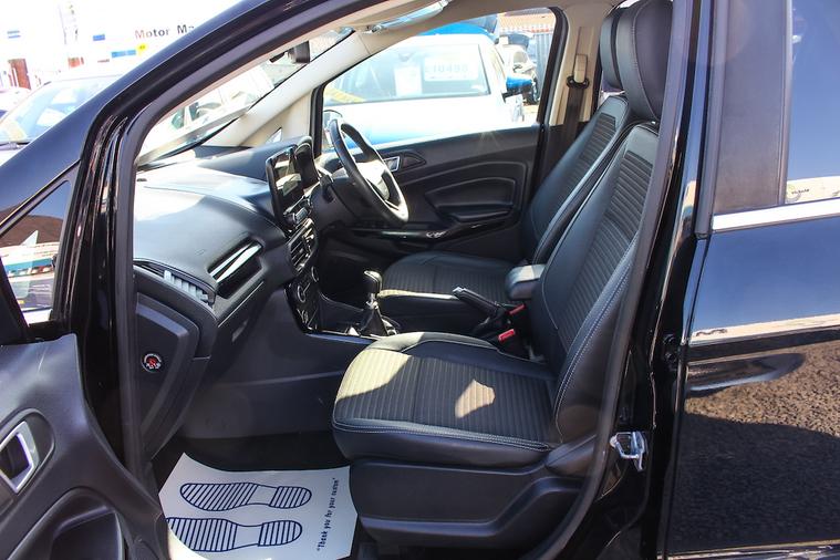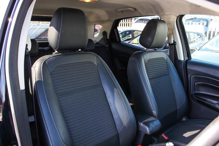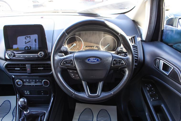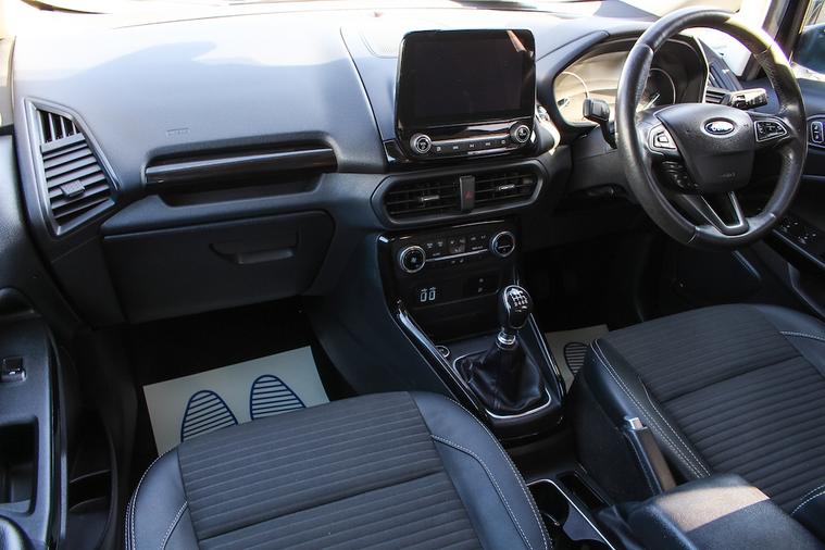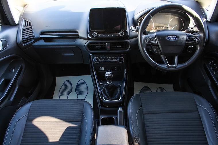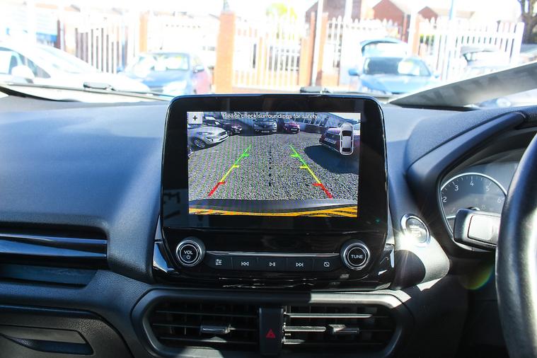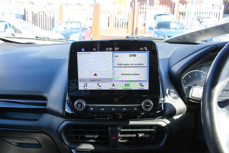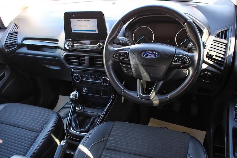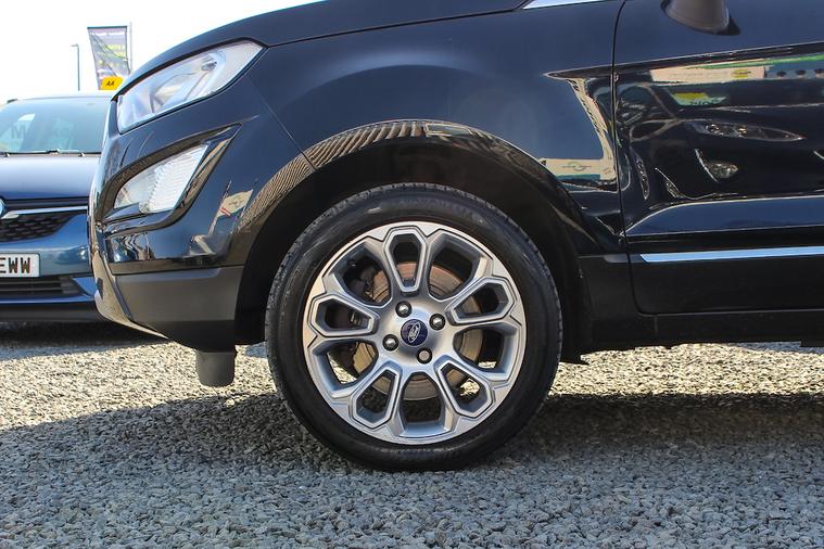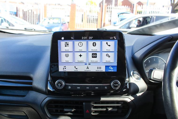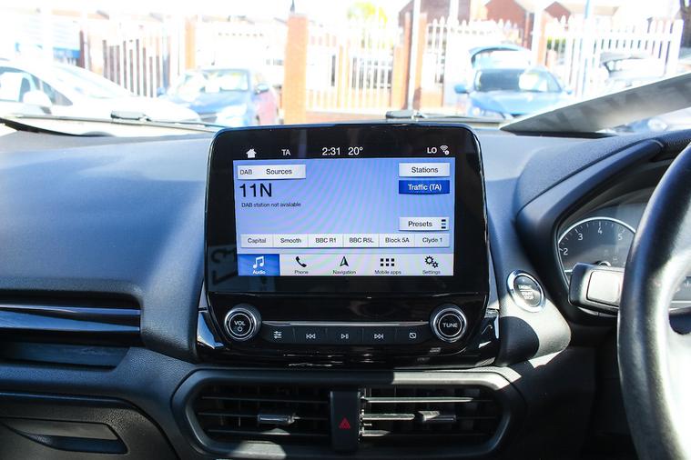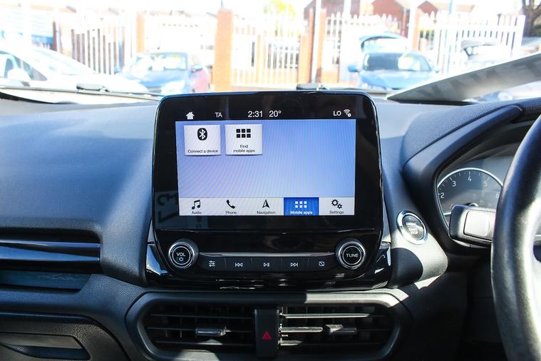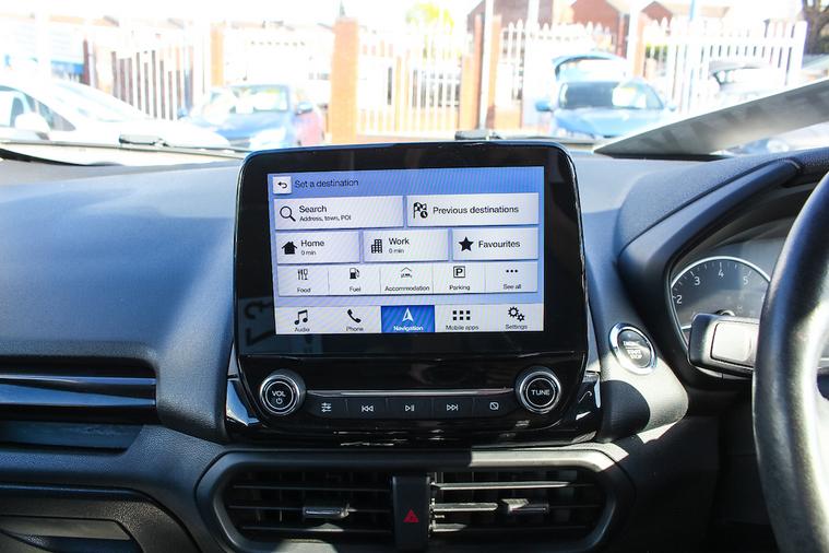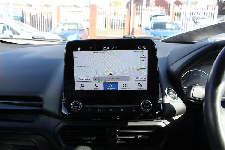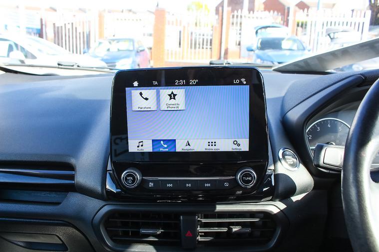 This 2018 Ford EcoSport T Titanium is presented with a clear vehicle history check and partial service history, offering peace of mind for its next owner. This stylish SUV is equipped with a responsive 1.0L petrol engine and meets Euro 6 emissions standards. Inside, you'll find a comfortable cabin featuring Electronic Automatic Temperature Control for effortless climate management, alongside automatic headlights that adjust to changing light conditions. Stay connected and navigate with ease thanks to the Ford Navigation System with Ford SYNC 3, which seamlessly integrates Apple CarPlay and Android Auto. Parking is made simpler with a rear view camera and rear parking sensors. The Ford EcoSport T Titanium demonstrates excellent efficiency, achieving an impressive 53 miles per gallon, which indicates its advantage over many other vehicles in its class. Its low CO2 emissions further highlight its economical and environmentally conscious performance. This combination of practical features, efficient performance, and solid provenance makes this Ford EcoSport a compelling choice for those seeking a versatile and well equipped compact SUV.