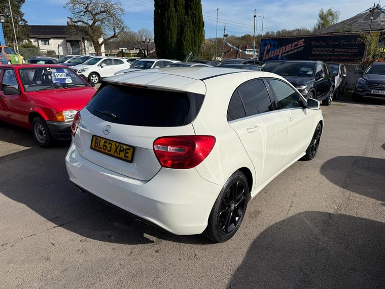 Mercedes A180 1.6 Sport in bright white. An absolutely gorgeous example here, in simply fantatsic condition both inside and out. Clearly a very well cared for car and it shows. This vehicle is not only an attractive option but also offers exceptional fuel efficiency with a combined consumption of up to 61 mpg. The sleek white exterior and five-door configuration make it a perfect choice for both individual and family use. Great spec too including Bluetooth Hands Free, Bluetooth Audio Streaming, Cruise Control, 1/2 Leather Upholstery, A/C, Alloy Wheels etc. Don't miss out on this fantastic opportunity to own a Mercedes A180. Contact us to book a test drive today or call 02921223506.