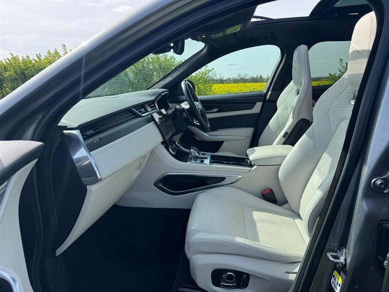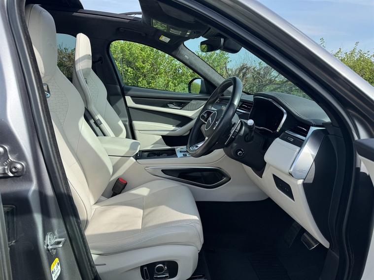 NATIONWIDE DELIVERY AVAILABLE! THIS 1 OWNER JAGUAR F-PACE 2.0 P250i R-DYNAMIC HSE FINISHED IN EIGER GREY WITH OYSTER BEIGE TRIM BENEFITS FROM THE FOLLOWING SPECIFICATION, SVR PERFORMANCE SEATS WITH ELECTRIC HEATED AND COOLED MEMORY AND LUMBAR SUPPORT, ELECTRIC PANORAMIC GLASS SUNROOF WITH ELECTRIC BLIND, 21" ALLOYS, MERIDIAN SURROUND SOUND SYSTEM, 11.4" INFOTAINMENT TOUCH SCREEN WITH SAT NAV, REAR VIEW REVERSE CAMERA, HEATED M/F/S/WHEEL WITH CRUISE CONTROL, PADDLE SHIFT AND VOICE CONTROL, ALCANTARA HEAD LINING, HEATED WIND SCREEN, FRONT AND REAR PARK DISTANCE CONTROL, DUAL ZONE AIR CON CLIMATE CONTROL, RED BRAKE CALIPERS, AUTOMATICALLY DIMMING REAR VIEW MIRROR, AUTOMATIC HEAD LIGHTS, BLUETOOTH PHONE PREP, APPLE CARPLAY, ANDROID AUTO, POWER TAIL GATE/BOOT LID, PRIVACY GLASS, ROOF RAILS, CENTRE ARM REST, PAN ROOF, QUIRKS CAR COMPANY ARE VERY PROUD WINNERS OF RUNNER UP FOR AUTOTRADER RETAILER OF THE YEAR 2021, WINNERS OF AUTOTRADER HIGHLY RATED FOR OUR CUSTOMER SERVICE 2021/20, AND WINNERS OF CAR GURUS TOP RATED DEALER 2021/20/19. WE USE THIRD PARTY SOURCES TO OBTAIN STANDARD AND OPTIONAL FITTED FEATURES AND SPECIFICATIONS. WE CANNOT BE HELD LIABLE FOR ITS ACCURACY SO PLEASE VERIFY THESE DETAILS WHEN VIEWING THE VEHICLE PRIOR TO PURCHASE. YOU MUST PHYSICALLY CHECK THE SPECIFICATION OF THE VEHICLE ON SITE PRIOR TO PURCHASE.
