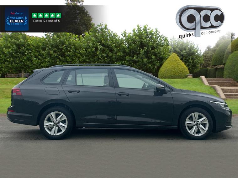 NATIONWIDE DELIVERY AVAILABLE! THIS 1 OWNER VOLKSWAGEN GOLF ESTATE 1.5 TSI LIFE FINISHED IN URANO GREY WITH GREY CLOTH BENEFITS FROM THE FOLLOWING SPECIFICATION, BALANCE OF MANUFACTURERS WARRANTY VALID UNTIL 01/2027, 16" ALLOYS, TOUCH SCREEN WITH SAT NAV, M/F/S/WHEEL WITH CRUISE CONTROL, COMFORT SEATS, FRONT AND REAR PARK DISTANCE CONTROL, AIR CON CLIMATE CONTROL, AUTOMATICALLY DIMMING REAR VIEW MIRROR, AUTOMATIC HEAD LIGHTS, AMBIENT LIGHTING, BLUETOOTH PHONE PREP, APPLE CAR PLAY, ROOF RAILS, ISOFIX POINTS, CENTRE ARM REST, QUIRKS CAR COMPANY ARE VERY PROUD WINNERS OF RUNNER UP FOR AUTOTRADER RETAILER OF THE YEAR 2021, WINNERS OF AUTOTRADER HIGHLY RATED FOR OUR CUSTOMER SERVICE 2021/20, AND WINNERS OF CAR GURUS TOP RATED DEALER 2021/20/19. WE USE THIRD PARTY SOURCES TO OBTAIN STANDARD AND OPTIONAL FITTED FEATURES AND SPECIFICATIONS. WE CANNOT BE HELD LIABLE FOR ITS ACCURACY SO PLEASE VERIFY THESE DETAILS WHEN VIEWING THE VEHICLE PRIOR TO PURCHASE. YOU MUST PHYSICALLY CHECK THE SPECIFICATION OF THE VEHICLE ON SITE PRIOR TO PURCHASE.