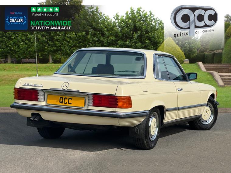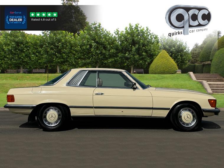 THIS 1980 MERCEDES 450 SLC IS PRESENTED IN THE CLASSIC COLOUR COMBINATION OF LIGHT IVORY WITH A PALOMINO INTERIOR. IT BENEFITS FROM HAVING AN ELECTRIC SUNROOF. WHAT MAKES THESE STREAMLINED SPORTS CAR STAND OUT FROM THE REST IS THE COMFORTABLE REAR SEATS, SUBLIME POWER DELIVERY FROM THE LARGER ENGINE MODELS AND OF COURSE, THE LEGENDARY STUTTGART BUILD QUALITY. QUIRKS CAR COMPANY ARE VERY PROUD WINNERS OF RUNNER UP FOR AUTOTRADER RETAILER OF THE YEAR 2021, WINNERS OF AUTOTRADER HIGHLY RATED FOR OUR CUSTOMER SERVICE 2021/20, AND WINNERS OF CAR GURUS TOP RATED DEALER 2021/20/19. WE USE THIRD PARTY SOURCES TO OBTAIN STANDARD AND OPTIONAL FITTED FEATURES AND SPECIFICATIONS. WE CANNOT BE HELD LIABLE FOR ITS ACCURACY SO PLEASE VERIFY THESE DETAILS WHEN VIEWING THE VEHICLE PRIOR TO PURCHASE. YOU MUST PHYSICALLY CHECK THE SPECIFICATION OF THE VEHICLE ON SITE PRIOR TO PURCHASE.