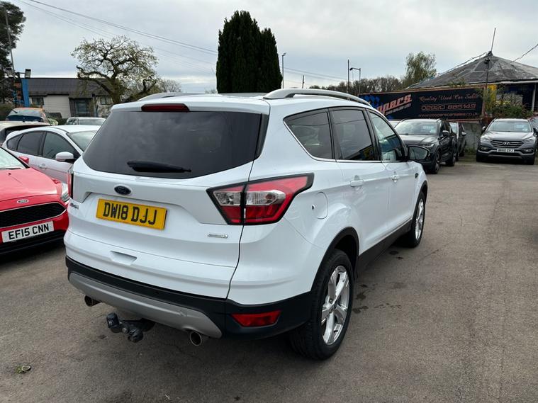 Ford Kuga 1.5 Titanium X in bright white. A fantastic example here, in stunning condition both inside and out. Drives as good as it looks too, a very well cared for car and it shows. Huge spec including Apple Car Play/Android Auto, Bluetooth Hands Free, Bluetooth Audio Streaming, Sat-Nav, USB, DAB Radio, Full Black Leather Upholstery, Heated Seats, Cruise Control, Dual Zone Climate Control, Power Tailgate, A/C, Alloy Wheels, Panoramic Roof....the list goes on and on. Don't miss out on the opportunity to own this exceptional Ford Kuga. Contact us to book a test drive today or call 02921223506 for more information.