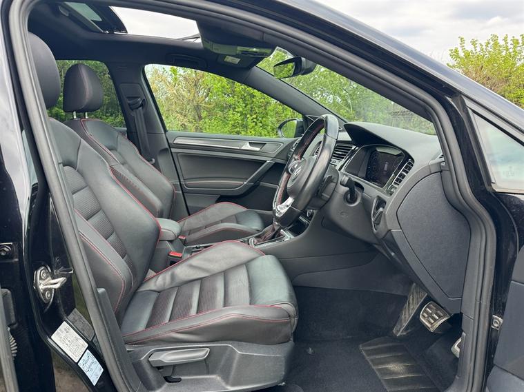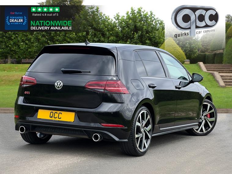 NATIONWIDE DELIVERY AVAILABLE! THIS VOLKSWAGEN GOLF 2.0 TSI GTI PERFORMANCE FINISHED IN DEEP BLACK WITH BLACK LEATHER WITH RED STITCHING AND PIPING BENEFITS FROM THE FOLLOWING SPECIFICATION, ELECTRIC PANORAMIC GLASS SUNROOF WITH SUNBLIND, 19" ALLOYS, DYNAUDIO SOUND SYSTEM, TOUCH SCREEN WITH SAT NAV, M/F/S/WHEEL WITH CRUISE CONTROL, PADDLE SHIFT, HEATED SEATS, ELECTRIC FOLDING EXTERIOR MIRRORS, FRONT AND REAR PARK DISTANCE CONTROL, DUAL ZONE AIR CON CLIMATE CONTROL, AUTOMATICALLY DIMMING REAR VIEW MIROR, AUTOMATIC HEAD LIGHTS, BLUETOOTH PHONE PREP, MIRRORLINK WITH APPLE CARPLAY AND ANDROID AUTO, ISOFIX POINTS, CENTRE ARM REST, PAN ROOF, FYM, COTB, QUIRKS CAR COMPANY ARE VERY PROUD WINNERS OF RUNNER UP FOR AUTOTRADER RETAILER OF THE YEAR 2021, WINNERS OF AUTOTRADER HIGHLY RATED FOR OUR CUSTOMER SERVICE 2021/20, AND WINNERS OF CAR GURUS TOP RATED DEALER 2021/20/19. WE USE THIRD PARTY SOURCES TO OBTAIN STANDARD AND OPTIONAL FITTED FEATURES AND SPECIFICATIONS. WE CANNOT BE HELD LIABLE FOR ITS ACCURACY SO PLEASE VERIFY THESE DETAILS WHEN VIEWING THE VEHICLE PRIOR TO PURCHASE. YOU MUST PHYSICALLY CHECK THE SPECIFICATION OF THE VEHICLE ON SITE PRIOR TO PURCHASE.