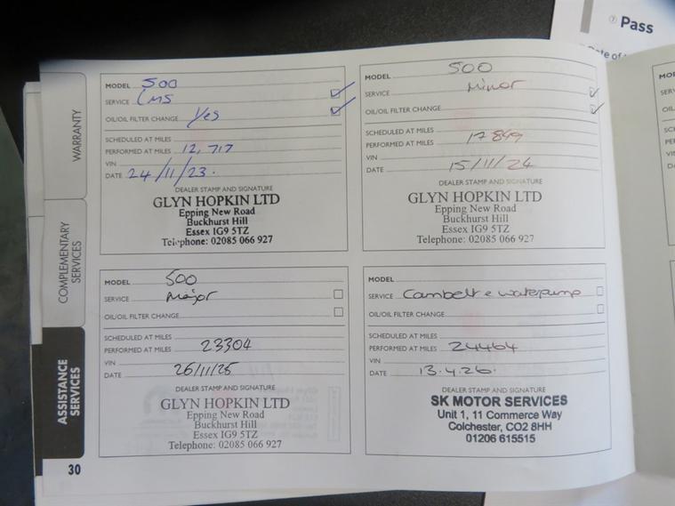 2017 (67) Fiat 500 1.2S 3dr Petrol Manual in Brilliant Black Metallic. *ULEZ Compliant* Full Service History at 1k, 4k, 7k, 12k, 17k, 23k & 24k. (7 Main Dealer Stamps). New Tyres Recently Fitted. New Timing Belt & Water Pump in April 2026. MOT: 17/05/2027 (No Advisories). Fiat 500 'S' Edition with Bluetooth with Voice Control, Fiat Uconnect, DAB Radio + USB + Aux in. Rear Park Sensors, Air Con, Daytime Lights, 15" Black Satin Alloy Wheels, Steering Wheel Controls, Electric Mirrors, Electric Windows, Start-Stop, All Seat Head Restraints, Isofix, Remote Central Locking, 2 x Keys. Have confidence buying from one of Colchester's oldest car dealerships established in 1973. Why not read what our customers say about us on Google reviews and why people choose to buy from us. -HPI AUTOCHECK CLEAR. -3 MONTH WARRANTY -EXTENDED 6/12/24 MONTH WARRANTY FROM JUST 195.00. -NATIONWIDE DELIVERY & FINANCE AVAILABLE.