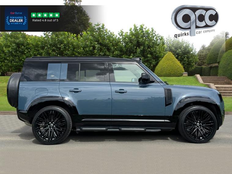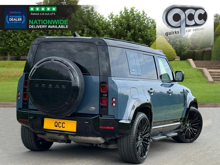 NATIONWIDE DELIVERY AVAILABLE! THIS LAND ROVER DEFENDER 110 3.0 D250 MHEV X-DYNAMIC HSE FINISHED IN TASMAN BLUE WITH BLACK LEATHER BENEFITS FROM THE FOLLOWING SPECIFICATION, MODIFIED BY URBAN AUTOMOTIVE INCLUDING URBAN AUTOMOTIVE FULL BODY STYLING KIT WITH EXTENDED WHEEL ARCHES, 23" URBAN AUTOMOTIVE UC-2 ALLOYS, URBAN BRANDING AND BADGING, URBAN AUTOMOTIVE SPARE WHEEL COVER, ROOF LIGHT BAR, ELECTRIC PANORAMIC GLASS SUNROOF WITH ELECTRIC BLIND, AIR SUSPENSION, SIDE STEPS, MERIDIAN SURROUND SOUND SYSTEM, BLACK PACK, 11.4" INFOTAINMENT TOUCH SCREEN WITH SAT NAV, REAR VIEW REVERSE CAMERA, 360 CAMERA, BLACK PAINTED ROOF, HEATED M/F/S/WHEEL WITH CRUISE CONTROL AND VOICE CONTROL, ELECTRIC HEATED AND COOLED MEMORY SEATS, HEATED REAR SEATS, 4x ZONE AIR CON CLIMATE CONTROL WITH REAR AIR CON, HEATED WIND SCREEN, ELECTRIC FOLDING EXTERIOR MIRRORS, FRONT AND REAR PARK DISTANCE CONTROL, CLEAR SIGHT REAR VIEW MIRROR, AUTOMATIC HEAD LIGHTS, APPLE CARPLAY, ANDROID AUTO, ISOFIX POINTS, PRIVACY GLASS, ROOF RAILS, CENTRE ARM REST, PAN ROOF, BODYKIT, BODYSTYLING, SIMILAR TO OVERFINCH, KAHN, ONYX, REVERE, EVOLVED, LUMMA, CHELSEA TRUCK CO, ABT, MAXTON DESIGN ETC, QUIRKS CAR COMPANY ARE VERY PROUD WINNERS OF RUNNER UP FOR AUTOTRADER RETAILER OF THE YEAR 2021, WINNERS OF AUTOTRADER HIGHLY RATED FOR OUR CUSTOMER SERVICE 2021/20, AND WINNERS OF CAR GURUS TOP RATED DEALER 2021/20/19. WE USE THIRD PARTY SOURCES TO OBTAIN STANDARD AND OPTIONAL FITTED FEATURES AND SPECIFICATIONS. WE CANNOT BE HELD LIABLE FOR ITS ACCURACY SO PLEASE VERIFY THESE DETAILS WHEN VIEWING THE VEHICLE PRIOR TO PURCHASE. YOU MUST PHYSICALLY CHECK THE SPECIFICATION OF THE VEHICLE ON SITE PRIOR TO PURCHASE