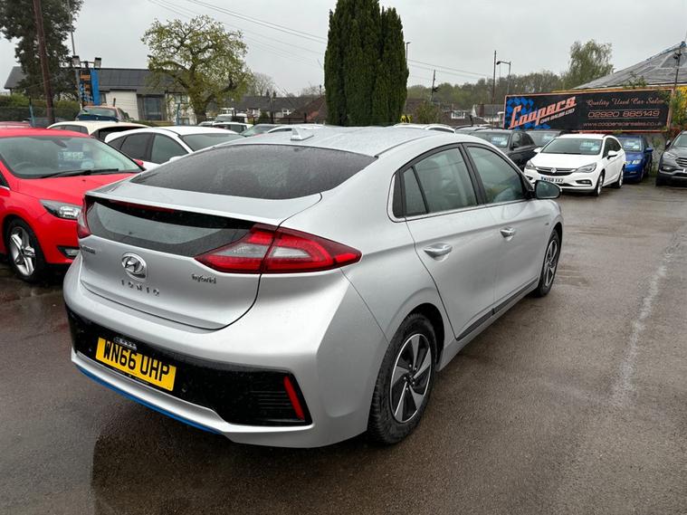 Hyundai Ioniq 1.6 Premium SE Hybrid in metallic silver. An absolutely stunning example here, in simply fantastic condition both inside and out. Comes with Full Service History, mainly Hyundai main dealer too. An incredibly well cared for car and it shows. This 2016 model boasts a petrol/electric hybrid engine with a 1.6L capacity, delivering both performance and eco-friendliness. The vehicle is not only economical with a low road tax cost of just 20 per annum, but it also features CO2 emissions of only 79g/km, making it an environmentally conscious choice for any driver. Massiv spec being the Premium SE model including Full Leather Upholstery, Heated and Cooled Seats, Sat-Nav, Bluetooth Hands Free, Bluetooth Audio Streaming, DAB Radio, USB, Adaptive Cruise Control, Dual Zone Climate Control, Front & Rear Parking Sensors, A/C, Alloy Wheels....the list goes on and on. Don't miss out on this fantastic opportunity to own a vehicle that offers both style and functionality. Contact us to book a test drive today or call 02921223506 to speak with one of our friendly team members at Coopers Car Sales in Caerphilly.