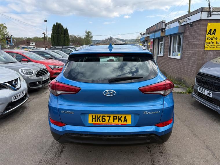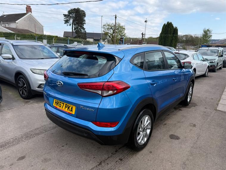 Hyundai Tucson 1.6 SE in metallic blue. An absolutely gorgeous Hyundai here, in superb condition both inside and out. Comes with loads of stamps in the service history, an incredibly well cared for car. As you can imagine drives very well indeed. This stylish Tucson combines practicality and comfort, making it an ideal choice for families and adventurers alike. Great spec including Heated Seats, Sat-Nav, Reversing Camera, Bluetooth Hands Free, Bluetooth Audio Streaming, DAB Radio, Dual Zone Climate Control, Cruise Control, Parking Sensors, A/C, Alloy Wheels etc. Dont miss out on this fantastic opportunity to own a reliable and feature-packed vehicle. Contact us to book a test drive today or call 02921223506.