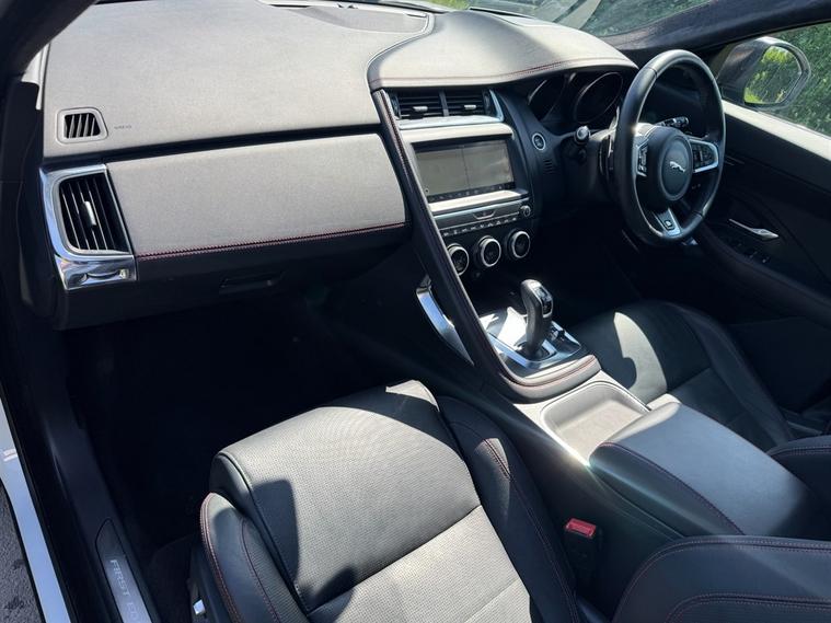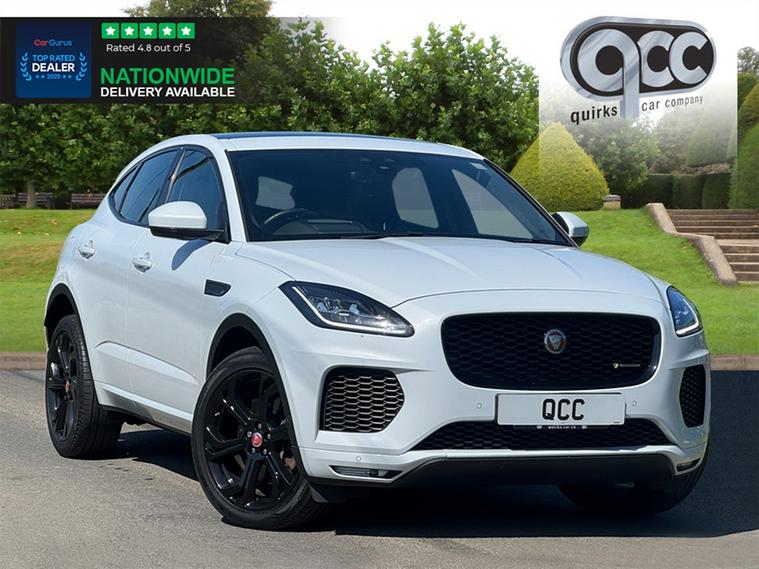 NATIONWIDE DELIVERY AVAILABLE! THIS JAGUAR E-PACE 2.0 P250 FIRST EDITION FINISHED IN YULOG WHITE WITH BLACK LEATHER AND RED STITCHING BENEFITS FROM THE FOLLOWING SPECIFICATION, PANORAMIC GLASS ROOF WITH ELECTRIC BLIND, DRIVE PRO PACK, PARK PRO PACK, 20" ALLOYS, MERIDIAN SOUND SYSTEM, HEAD UP DISPLAY (HUD), TOUCH SCREEN WITH SAT NAV, REAR VIEW REVERSE CAMERA, M/F/S/WHEEL WITH CRUISE CONTROL, PADDLE SHIFT AND VOICE CONTROL, ELECTRIC HEATED MEMORY PREMIUM SEATS WITH LUMBAR SUPPORT, BLACK ALCANTARA HEAD LINING, ELECTRIC FOLDING EXTERIOR MIRRORS, FRONT AND REAR PARK DISTANCE CONTROL, HEATED WIND SCREEN, DUAL ZONE AIR CON CLIMATE CONTROL, AUTOMATICALLY DIMMING REAR VIEW MIRROR, AUTOMATIC HEAD LIGHTS, AMBIENT LIGHTING, BLUETOOTH PHONE PREP, APPLE CARPLAY, ANDROID AUTO, POWER TAIL GATE/BOOT LID, ISOFIX POINTS, CENTRE ARM REST, PAN ROOF, QUIRKS CAR COMPANY ARE VERY PROUD WINNERS OF RUNNER UP FOR AUTOTRADER RETAILER OF THE YEAR 2021, WINNERS OF AUTOTRADER HIGHLY RATED FOR OUR CUSTOMER SERVICE 2021/20, AND WINNERS OF CAR GURUS TOP RATED DEALER 2021/20/19. WE USE THIRD PARTY SOURCES TO OBTAIN STANDARD AND OPTIONAL FITTED FEATURES AND SPECIFICATIONS. WE CANNOT BE HELD LIABLE FOR ITS ACCURACY SO PLEASE VERIFY THESE DETAILS WHEN VIEWING THE VEHICLE PRIOR TO PURCHASE. YOU MUST PHYSICALLY CHECK THE SPECIFICATION OF THE VEHICLE ON SITE PRIOR TO PURCHASE.