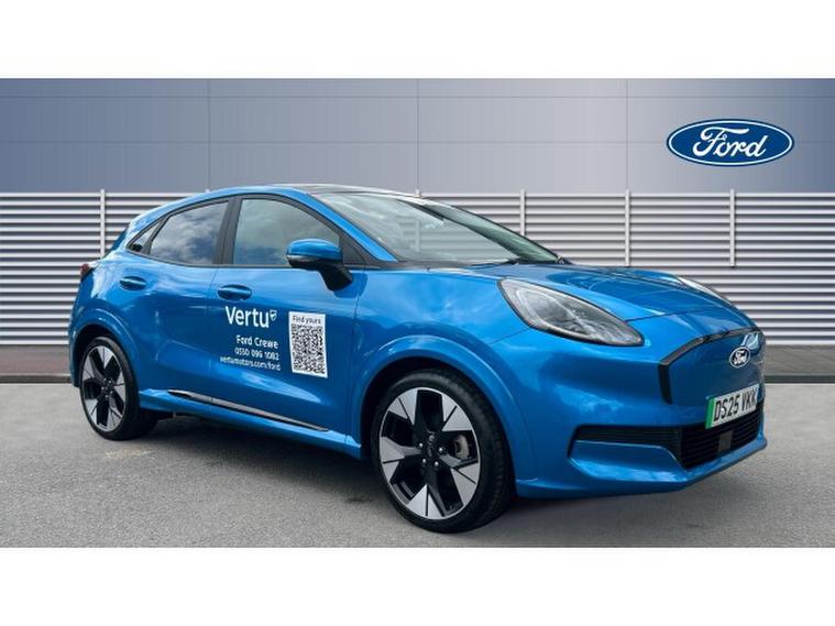 Ford Puma 123kW Premium 43kWh 5dr Auto Electric Hatchback, , This gorgeous metallic Electric Blue Puma Gen E isn't just a stunning hatchback it also boasts AN EX DEMONSTRATOR OWNERSHIP! The car also benefits from APPLE CARPLAY & ANDROID AUTO meaning whether you want to listen to incoming messages, listen to the latest songs on Spotify or get live map updates this feature is definitely for you - AIR CONDITIONING to keep you cool in the summers and warm you up in these cold winter days this car won't be here long! The Ford Puma Gen‑, e Electric Hatch 123kW Premium 43kWh 5dr Auto blends electric efficiency with style, space, and smart tech. Its 123kW motor (approx. 165hp) delivers smooth, responsive performance, ideal for both city and motorway driving. The 43kWh battery offers a real-world range of up to 210 miles, making it practical for daily use. Inside, the Premium trim adds comfort and sophistication, featuring a digital instrument cluster, SYNC 4 infotainment, wireless charging, and smartphone connectivity. Advanced driver aids like adaptive cruise control, lane-keeping assist, and blind-spot monitoring enhance safety. With a generous 456L boot and flexible rear seating, it offers SUV-like practicality in a hatchback size. Low running costs, zero emissions, and a refined driving experience make the Puma Gen‑, e a compelling choice for eco-conscious All our vehicles at Vertu Motors come fully prepared with our peace of mind Main Dealer guarantee. Every vehicle is fully prepared both mechanically and cosmetically up to the highest standard which even includes having any tyre replaced that has less than 3mm tread depth (legal limit is 1.6mm). We ensure that you will have a minimum of 2 keys and to give you even further reassurance we also supply you with a 3 months complimentary warranty and a 14-day money back guarantee. Our vehicles also come with a full HPI vehicle check assuring you that your new vehicle will have no registered accident claims reported, or any outstanding finance, it also shows the vehicle has not been imported. **DUE TO HIGH STOCK TURNOVER WE RECOMMEND RESERVING THE CAR ONLINE TO AVOID DISAPPOINTMENT **