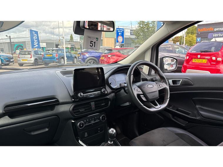 Ford EcoSport 1.0 EcoBoost 125 ST-Line 5dr Petrol Hatchback, , Step up your drive with the 2022 Ford EcoSport ST-Line where sporty styling meets everyday versatility. With its sharp looks premium interior and advanced tech this compact SUV is built to impress. Key Features Include Rear Parking Sensors make every reverse safe and simple Touchscreen Media System with Satellite Navigation Apple CarPlay Android Auto and Driver Profile Interface Leather Alcantara ST Interior sporty stylish and supremely comfortable Heated Front Windscreen no more waiting on frosty mornings Climate Control keep your cabin just the way you like it Cruise Control effortless motorway driving Ambient Lighting set the perfect mood for every journey And so much moreWith its elevated driving position responsive performance and ST-Line design touches this EcoSport delivers the perfect balance of practicality and presence. Drive in style. Drive smart. Drive the EcoSport ST-Line. Contact Vertu Renault Exeter today to arrange your test drive or find out more about this fantastic SUV
