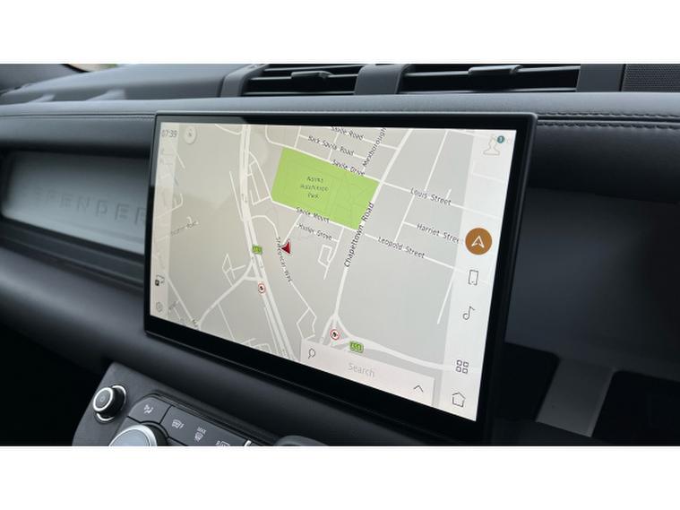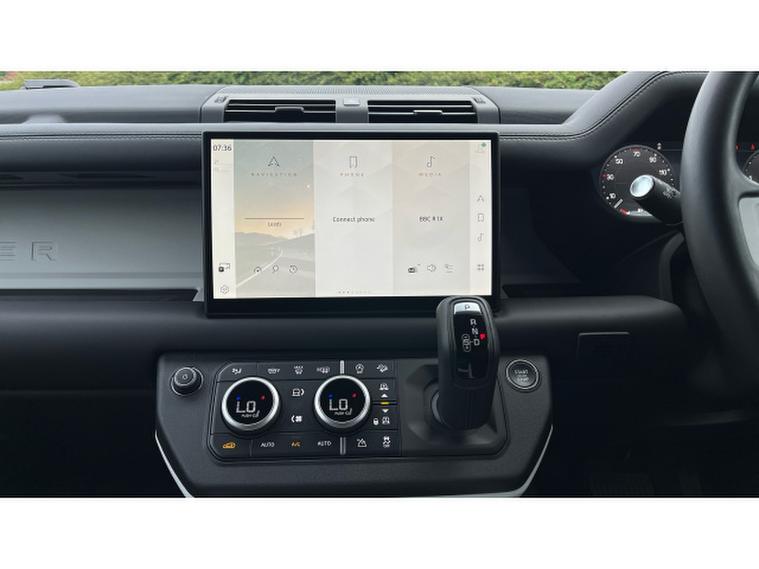 Under the bonnet, the powerful 3.0-litre D350 Ingenium diesel engine produces 350PS and a mighty 700Nm of torque. Enhanced with mild-hybrid (MHEV) technology, it offers improved efficiency without sacrificing performance. With electronic air suspension, this Defender adapts seamlessly to any terrain, ensuring maximum comfort whether you're cruising the motorway or exploring off-road trails.