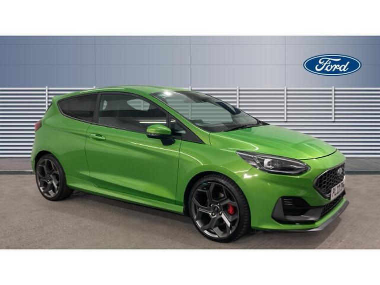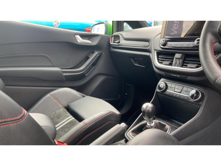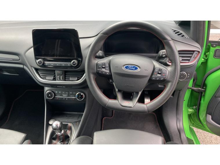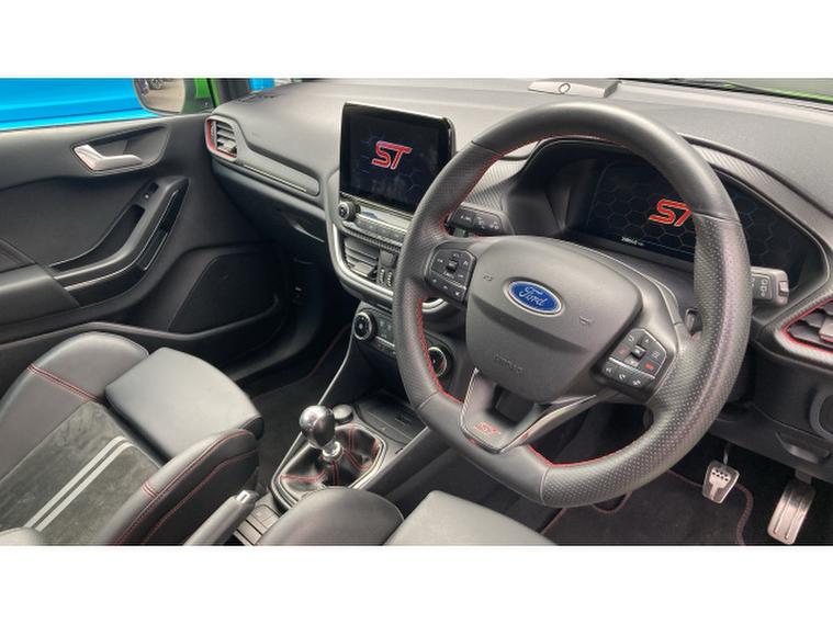 Ford Fiesta ST 1.5 EcoBoost ST-3 5dr Petrol Hatchback, , This Fiesta ST-3 5dr is the ultimate hot hatch, blending thrilling performance, sharp handling, and everyday usability into one exciting package. Powered by a punchy 1.5-litre EcoBoost turbocharged engine delivering 200PS, it offers an exhilarating drive with rapid acceleration, a slick 6-speed manual gearbox, and a precise, sporty chassis that makes every journey engaging, whether you are tackling twisty roads or cruising through the city. As the top-of-the-range ST-3 model, it comes packed with premium features including heated Recaro sports seats, a B&O premium sound system, a fully digital instrument cluster, keyless entry and start, cruise control, and an 8-inch touchscreen with SYNC 3 navigation, Apple CarPlay and Android Auto. The 5-door layout adds extra practicality, with easy rear-seat access and a surprisingly spacious boot, making it ideal for those who want performance without sacrificing everyday convenience. The aggressive ST styling, 18-inch alloy wheels, and signature honeycomb grille give it a commanding presence on the road, while advanced safety systems such as lane-keeping assist, traffic sign recognition, and rear parking sensors enhance confidence behind the wheel. If you are looking for a well-equipped, fun-to-drive, and practical performance hatchback, this Fiesta ST-3 delivers everything in a perfectly balanced and refined package.