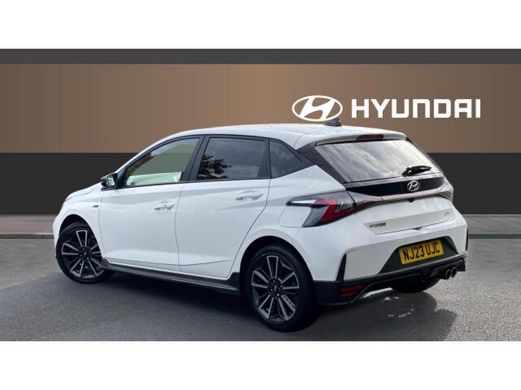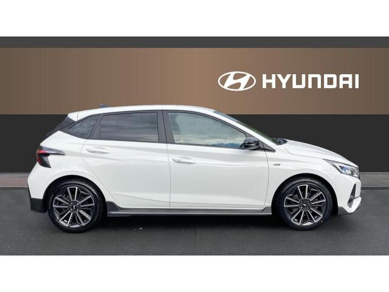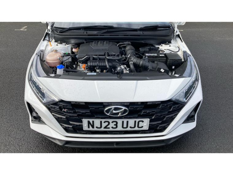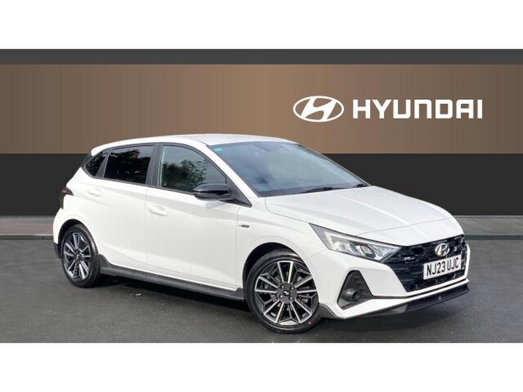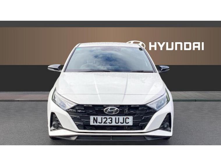 Hyundai i20 1.0T GDi 48V MHD 120 N Line 5dr Petrol Hatchback, , LOW MILEAGE WITH WARRANTY UNTIL 2028! This stunning white 2023 Hyundai i20 Hatchback 1.0T GDi 48V MHD 120 N Line 5dr offers a sporty, efficient, and fun-to-drive package. Its mild-hybrid tech boosts performance and fuel economy, while the turbocharged engine delivers punchy acceleration. The N Line styling adds real character, inside and out, with a premium feel and athletic flair. Agile handling, modern features, and everyday practicality make this i20 a standout in the compact hatchback class.