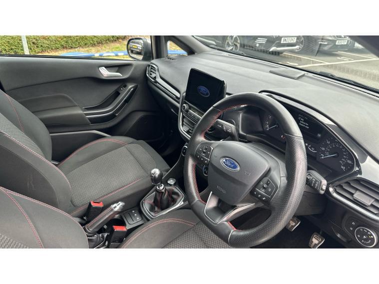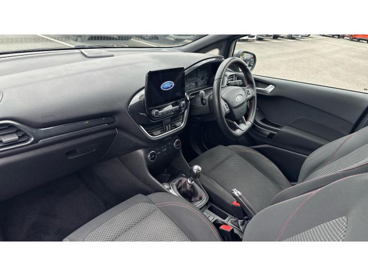 Ford Fiesta 1.0 EcoBoost 125 ST-Line 5dr Petrol Hatchback, , The Ford Fiesta 1.0 EcoBoost 125 ST-Line 5dr is a dynamic and stylish supermini that offers a blend of performance, efficiency, and practicality. Powered by a 1.0-litre turbocharged three-cylinder engine producing 125 PS (123 bhp) and 170 Nm of torque, it delivers a responsive driving experience, with a 062 mph time of approximately 9.0 seconds and a top speed of around 121 mph. The six-speed manual transmission contributes to its engaging handling, while the mild-hybrid system enhances fuel efficiency. With dimensions of 4, 040 mm in length, 1, 941 mm in width (including mirrors), and 1, 476 mm in height, the Fiesta offers a compact yet spacious interior. The boot capacity is approximately 292 litres, providing ample space for luggage. The ST-Line trim adds sporty styling cues, including 17-inch alloy wheels, a rear spoiler, and unique body styling elements. Inside, the cabin features sports seats, a leather-wrapped steering wheel, and advanced infotainment options. Overall, the Fiesta 1.0 EcoBoost 125 ST-Line 5dr combines practicality with a spirited driving experience, making it a compelling choice in the supermini segment.