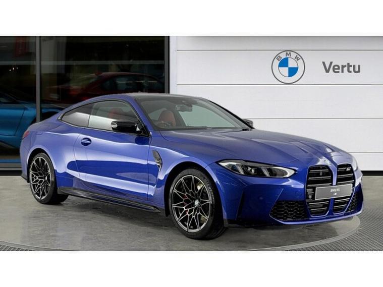 BMW M4 xDrive Competition M 2dr Step Auto Petrol Coupe, , The 2025 BMW M4 Competition in Portimao Blue is now available and ready to test drive at Vertu BMW Sunderland. This car has been purchased and maintained by ourselves from new and used as a company demonstrator. The BMW M4 Competition is a bold expression of high-performance engineering, blending striking coup styling with razor-sharp handling and immense twin-turbo power for an adrenaline-charged driving experience. Diving into the standout features The 19 Inch Front & 20 Inch Rear Double-Spoke Alloy Wheels give that car a race car like stance with a delightful contrast to the stunning Portimao Blue finish. The M Sport Differential distributes power evenly through your rear tyres to avoid wheel spin and offer more control over the car. The M Adaptive Suspension lets you adjust your ride to suit your needs and offer comfort with a smooth ride. The M Sport Brakes with Red Calipers not only look aesthetically pleasing but offer wonderful stopping power you can rely on.