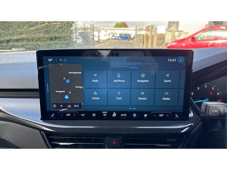 The ST-Line trim brings a sportier look and feel to the Focus range, with unique styling cues including a honeycomb grille, sculpted bumpers, body-coloured side skirts, and larger alloy wheels that give the car a more athletic stance. Inside, the sports seats, red contrast stitching, flat-bottom steering wheel and aluminium pedals create a driving environment that feels both refined and engaging.