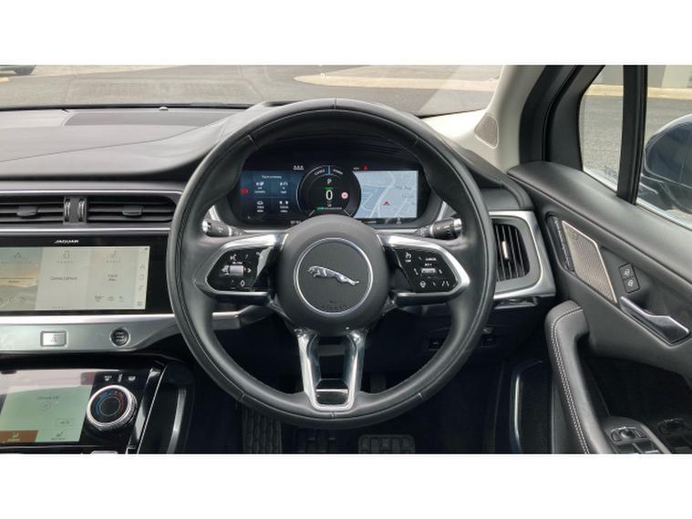Jaguar I-Pace 294kW EV400 HSE 90kWh 5dr Auto [11kW Charger] Electric Estate, , Vertu JLR Bolton are proud to offer a rare opportunity to own this stunning I-Pace EV400 HSE finished in Portofino Blue metallic with Ebony Leather Seats. This one owner car has been immaculately looked after and comes with 2 former services last done March 2025 at 18307 miles. This car comes with a stunning specification which includes 20 inch diamond cut alloys, fixed panoramic sunroof, head up display, privacy glass, heated and cooled front seats, 10 inch touchscreen with Sat Nav, reverse camera, cruise control, heated steering wheel, dual zone climate control, keyless entry, power tailgate, heated windscreen, Matrix LED headlights, parking sensors, auto lights and wipers, Apple car play, Bluetooth, DAB radio, virtual cockpit, Meridian 3d surround sound, Isofix, trip computer, push button start, and much more. This car is ready to view and test drive today and comes as part of the Approved JLR programme which includes 12 months warranty, 12 months roadside assistance, MOT test warranty and complimentary experience day as part of purchase.