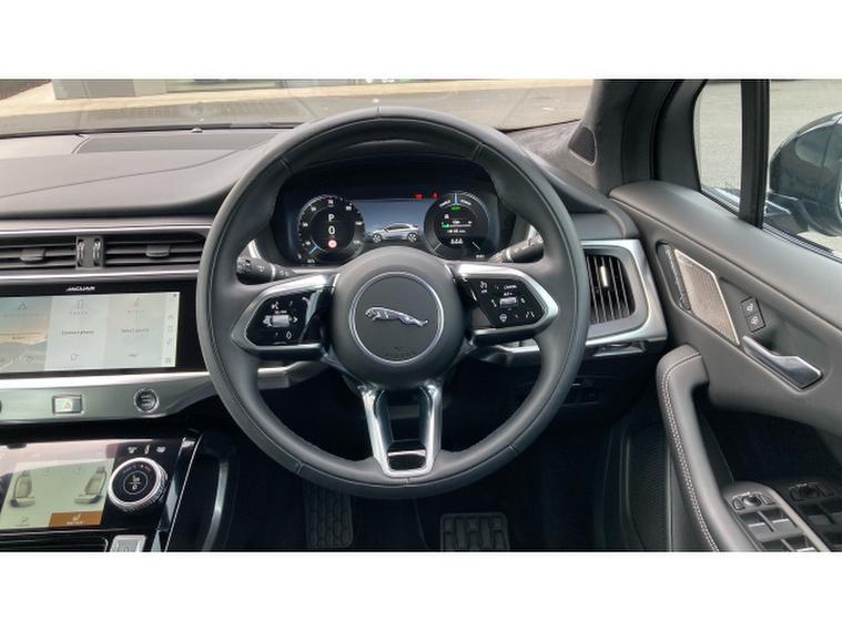 Jaguar I-Pace 294kW EV400 R-Dynamic HSE Black 90kWh 5dr Auto Electric Estate, , Vertu JLR Bolton are proud to offer this stunning and rare Jaguar I-Pace EV400 R-Dynamic HSE Black finished in Santorini Black metallic with Ebony Windsor leather interior. This one owner car has been immaculately looked after by its former owner and comes with optional 22 inch gloss black alloys, heads up display, privacy glass and air suspension. Standard features include touchscreen Sat Nav, reverse camera, heated and cooled front seats, parking sensors, Apple car play, adaptive cruise control, dual zone climate control, keyless entry, power tailgate, heated windscreen, steering wheel audio controls, electric memory seats, Pixel LED headlights, auto lights and wipers, power fold mirrors, trip computer, Isofix, virtual cockpit, Bluetooth, DAB radio and much more. This car is ready to view, test drive and drive away today and comes as part of the Approved JLR programme which includes 12 months warranty, 12 months roadside assistance, MOT test warranty, and 165 multi point inspection as part of purchase.