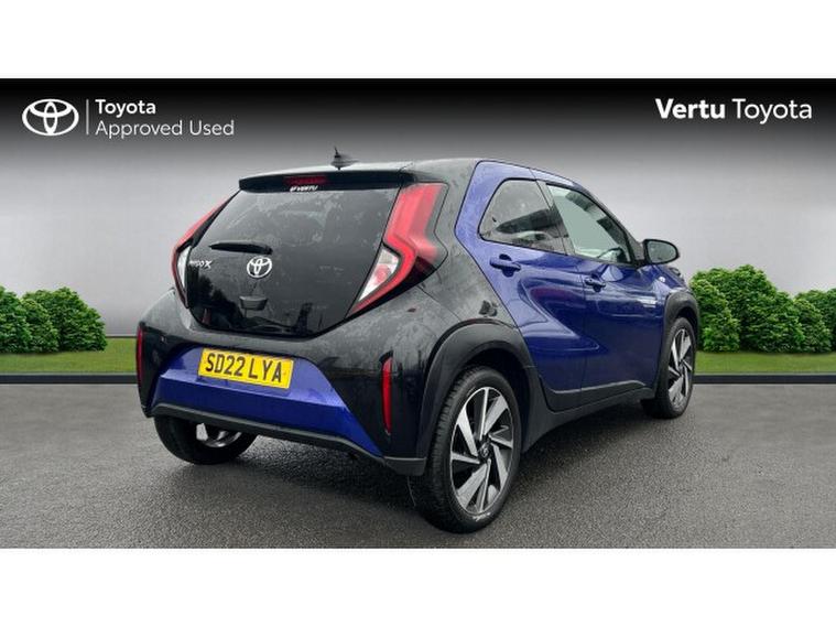 Toyota Aygo X 1.0 VVT-i Edge 5dr Petrol Hatchback, , Stand out on the road with the Toyota Aygo X Edge Manual in eye-catching Juniper Blue Bi-tone! With just 3, 300 miles and first registered on 29.07.22, this stylish city crossover combines bold design, compact practicality, and confident performance, making every drive fun and effortless. The Edge trim brings added flair and comfort, while advanced safety features give you peace of mind wherever you go. Perfect for urban adventures and everyday journeys, this Aygo X is as reliable as it is stylish. Plus, with Toyotas 10 Year Service Activated Warranty, you can enjoy worry-free motoring for years to come. All our vehicles at Vertu Motors come fully prepared with our peace of mind Main Dealer guarantee. Every vehicle is fully prepared both mechanically and cosmetically up to the highest standard which even includes having any tyre replaced that has less than 3mm tread depth (legal limit is 1.6mm). Every vehicle will have a minimum of 9 months MOT remaining and you will not have to service the vehicle for at least 6 months or 6000 miles. We ensure that you will have a minimum of 2 keys and to give you even further reassurance we also supply you with a 3 months complimentary warranty and a 14-day money back guarantee. Our vehicles also come with a full HPI vehicle check assuring you that your new vehicle will have no registered accident claims reported, or any outstanding finance, it also shows the vehicle has not been imported. In addition to this we also do a full Government VOSA report check to verify the mileage on all cars over 3 years old. This service comes free of charge to all our customers unlike other main dealers who charge you an admin fee for this service. We also offer nationwide delivery on all our vehicles, so call today to arrange a viewing / test drive and let one of our professional sales executives give you the Vertu Motors experience.