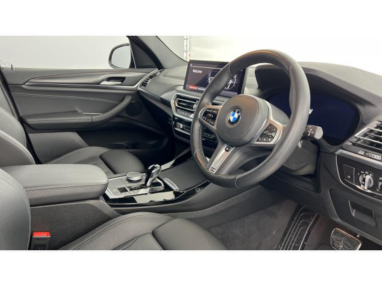 BMW X3 xDrive20 M Sport 5dr Step Auto Petrol Estate, , Step into the perfect balance of performance, luxury, and practicality with this stunning BMW X3 xDrive20i M Sport, finished in Black Sapphire Metallic. Its commanding road presence is enhanced by 20-inch alloy wheels, while the Vernasca leather seats in black with grey contrast stitching add a refined touch of sport-inspired elegance.
