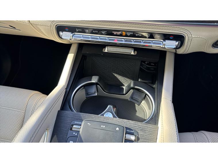 Step inside and the experience becomes even more special. The cabin is trimmed in macchiato beige leather with climatised memory seats that ensure year round comfort on even the longest journeys. The panoramic sliding sunroof floods the interior with light while passengers in the rear can enjoy the dedicated entertainment system. For the driver the Head up Display places key information directly in view while the superb MBUX navigation system works seamlessly with Apple CarPlay and wireless phone charging. The Burmester surround sound system completes an environment of effortless refinement.