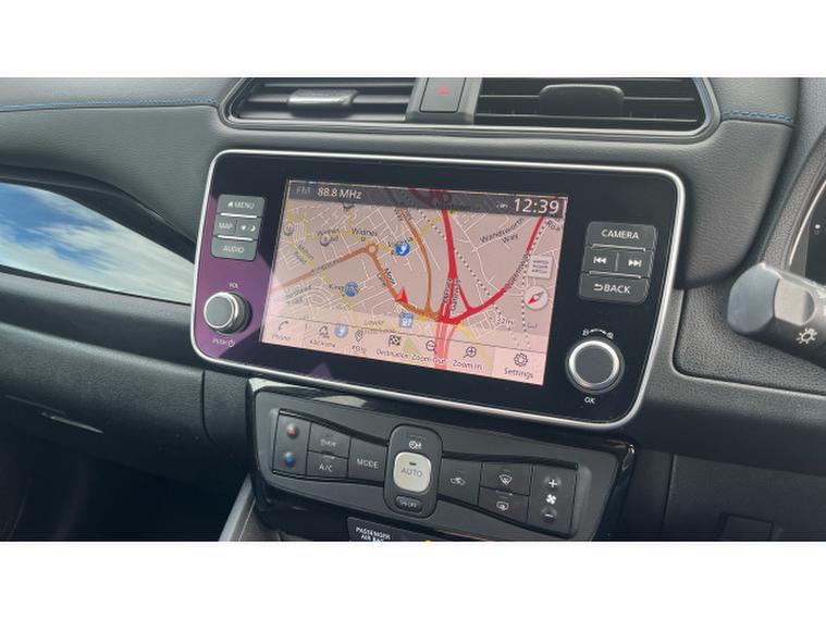 Step inside, and the Leaf N-Connecta surrounds you with comfort and advanced technology. The 8-inch NissanConnect infotainment system takes centre stage, providing navigation, smartphone integration through Apple CarPlay and Android Auto, and intuitive controls to keep you connected on the move. Intelligent driver aids such as ProPILOT, parking camera, and safety assistance systems come as standard, delivering reassurance on every journey. The cabin is spacious and practical, offering generous passenger room and a versatile boot for day-to-day needs.
