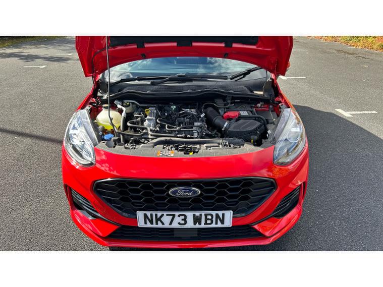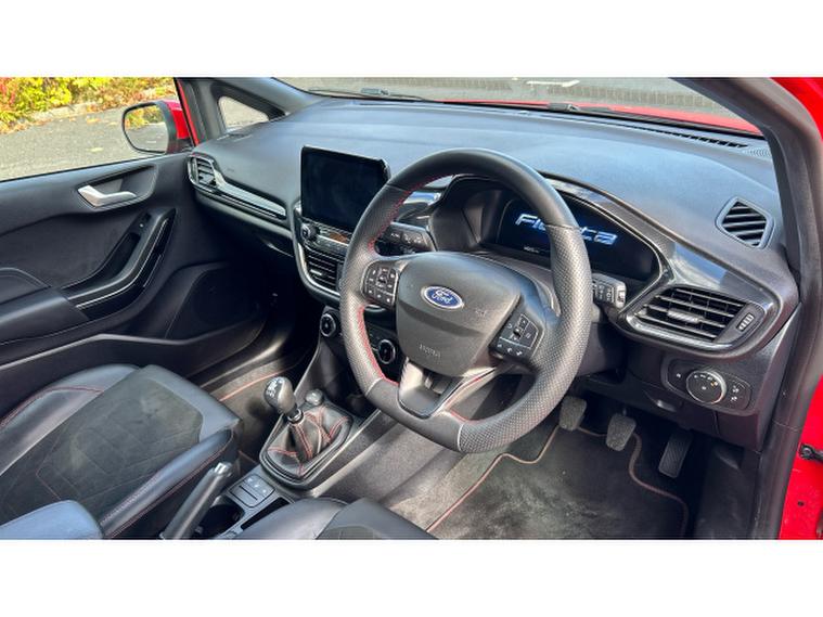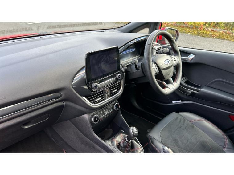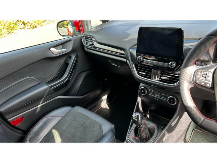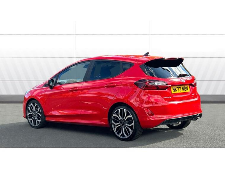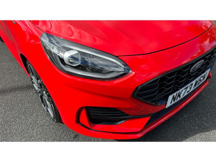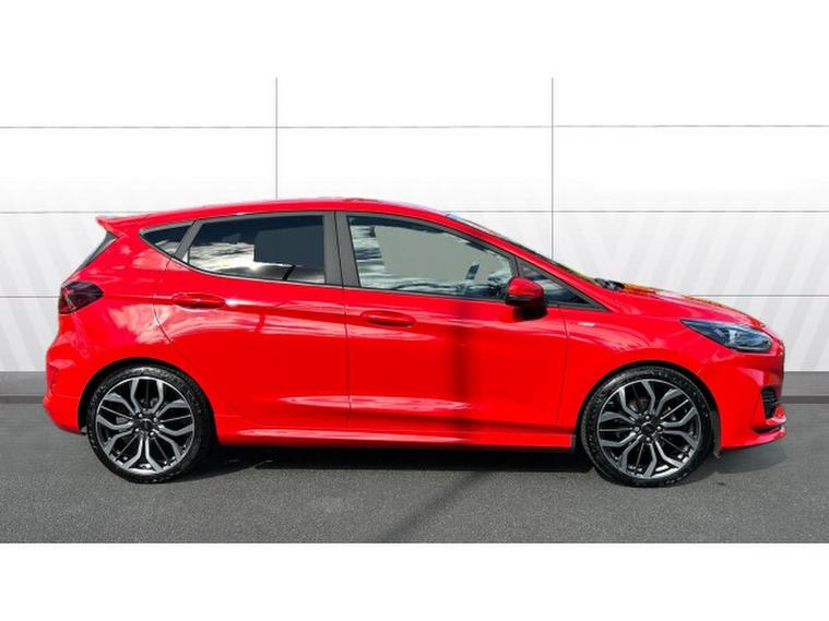 Ford Fiesta 1.0 EcoBoost ST-Line X 5dr Petrol Hatchback, , This stunning red 2023 Ford Fiesta Hatchback 1.0 EcoBoost ST Line X 5 door is a terrific choice for anyone wanting a small car that doesn't feel small. The 1.0 litre EcoBoost engine delivers lively, punchy performance that turns everyday commuting into an enjoyable experience while still remaining economical. Sitting in the ST Line X trim brings sporty styling inside and out, from its sharp alloy wheels and athletic body kit to supportive, well shaped seats and a driver focused cockpit. Tech is up to date with a clean digital instrument cluster, a decent touchscreen with smartphone connectivity, and useful driver's aids that feel intuitive. Ride quality is firmer than base models, especially over rougher surfaces, but it rewards with excellent grip, nimble handling and a strong sense of control. For those who want personality, efficiency and well rounded capability in a compact hatch, this Fiesta delivers with confidence.