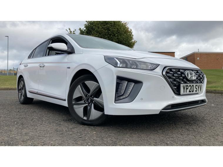 Hyundai IONIQ 1.6 GDi Hybrid Premium SE 5dr DCT Hybrid Hatchback, , The Hyundai IONIQ 1.6 GDi Hybrid Premium SE 5dr DCT Hybrid Hatchback is a smart, eco-friendly choice for drivers who want impressive fuel economy without compromising on comfort or technology. Finished in clean, classic white, this 2020 (20 reg) model has covered just 30, 590 miles and is in great condition. With its advanced hybrid system combining a 1.6-litre petrol engine and electric motor, the IONIQ delivers smooth performance and outstanding fuel efficiency, making it ideal for both city driving and longer journeys. The Premium SE trim adds a touch of luxury, with features including leather seats, heated and ventilated front seats, a heated steering wheel, wireless phone charging, adaptive cruise control, and a large touchscreen infotainment system with sat nav, Apple CarPlay, and Android Auto. Safety is well covered too, with lane keeping assist, blind spot monitoring, and autonomous emergency braking all included. The IONIQs aerodynamic design helps maximise efficiency, while the spacious interior and generous boot make it practical for everyday use. Whether you're looking to reduce running costs or lower your environmental impact, this hybrid is a top choice. Visit here at Hyundai Peterlee to see this well-maintained, high-spec IONIQ its efficient, comfortable, and ready to drive away.