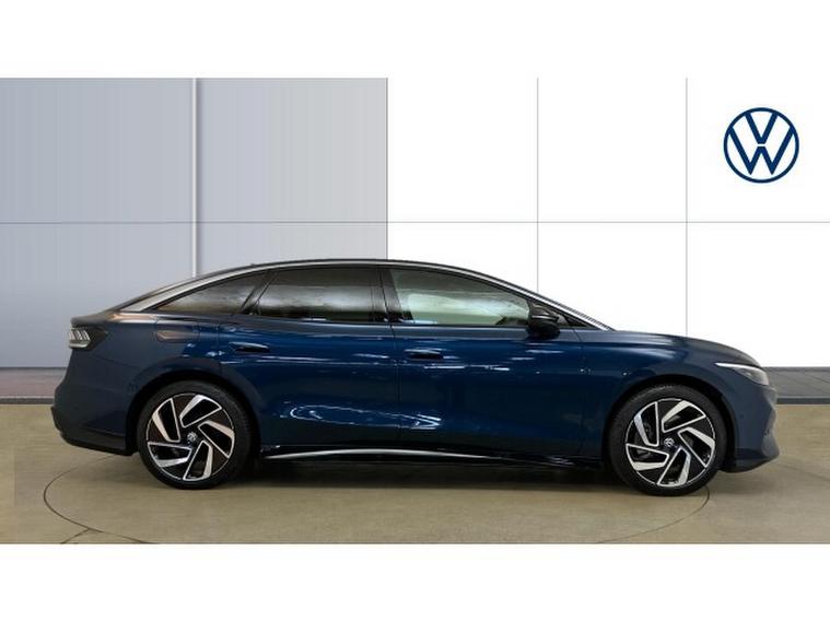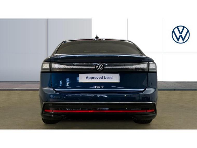 Volkswagen ID.7 210kW Match Pro 77kWh 5dr Auto Electric Hatchback, , Volkswagen's ID.7 Pro Match presents itself as a confident stride into the future of electric mobility, blending sleek design with substantial real-world practicality. Finished in striking Aquamarine Blue Metallic, it carries a premium presence that sets it apart on the road, with its aerodynamic lines and discreet detailing reinforcing its position at the top of the brand's electric line-up. This example also benefits from a swivelling towbar, adding unexpected versatility to its refined appearance.