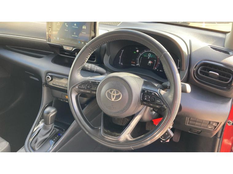Toyota Yaris 1.5 Hybrid Design 5dr CVT Hybrid Hatchback, , Some cars are sensible. Some are stylish. Very few manage to be both without trying too hard. This one, finished in Scarlet Flare, manages it with a wink and a grinlike the friend who can pull off a three-piece suit but still beat you at karaoke.