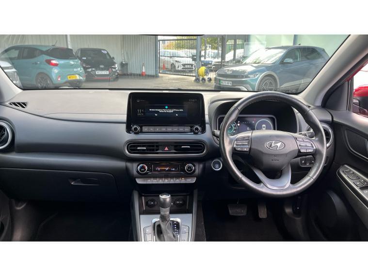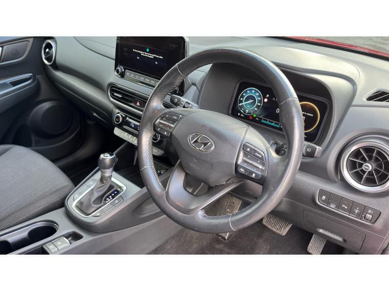 Hyundai KONA 1.6 GDi Hybrid Premium 5dr DCT Hybrid Hatchback, , Discover this 2022 Hyundai KONA h GDi Premium, a stylish and efficient compact SUV. This particular model boasts a 1.6 litre petrol hybrid engine, offering a superb fuel economy of 57 miles per gallon. It comes equipped with a range of desirable features, including heated front seats for those chilly mornings, a convenient wireless phone charging pad, and automatic headlights that activate with a dusk sensor. Stay connected and entertained with Bluetooth connectivity, and enjoy added comfort thanks to the heated steering wheel.