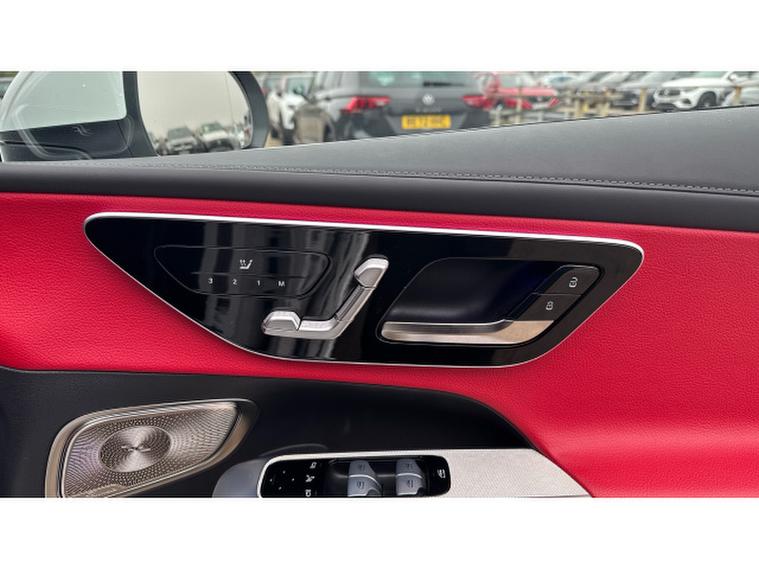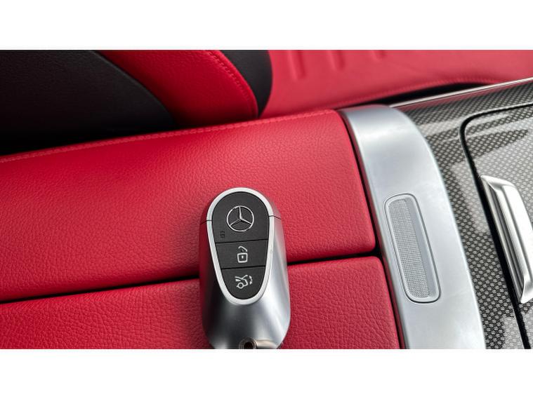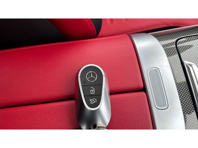 Inside, comfort is exceptional. The heated red leather seats with memory function provide support on longer journeys, while the panoramic sliding sunroof floods the cabin with light. Technology is first class, with the MBUX augmented reality satellite navigation, head up display and fingerprint scanner ensuring both convenience and security. Entertainment is provided by the Burmester 3D surround sound system, complemented by Apple CarPlay and wireless phone charging.