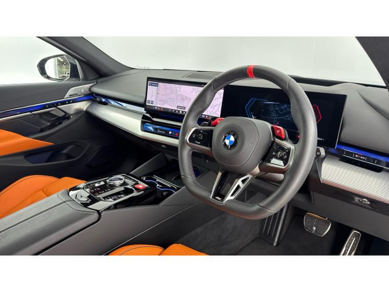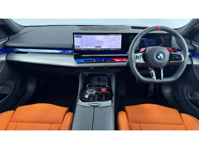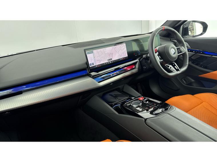 BMW M5 5dr DCT Estate, , The 2025 BMW M5 Touring in Storm Bay is now available and ready to test drive at Vertu BMW Sunderland. The BMW M5 Touring arrives as a perfect blend of supercar performance, boasting upwards of 700 BHP thanks to its twin turbo-charged engine & hybrid electric motor. Matched by everyday practicality, with space for all the family and a wealth of features to enhance comfort and driving ease. Diving into the standout features The 20 Inch Front & 21 Inch Rear Double-Spoke Alloy Wheels give that car a race car like stance with a delightful contrast to the stunning Storm Bay finish. The Electric Memory Kyalami Orange Merino Leather Sports Seating has you sat in endless comfort as you are gripped to the cockpit when tackling winding roads or race tracks. Front & Rear Heated Seating provides a warming seat for all onboard to enjoy. Parking Assistant Plus has you covered from all angles when it comes to tricky parking scenarios as you are effortlessly guided into position. The Bowers and Wilkins Surround Sound System lets you listen to your favourite sounds like never before, with a crystal-clear, concert like experience. Wireless Charging keeps you charged and connected on the go for endless music streaming or handsfree calls.