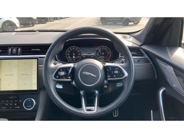 Jaguar F-Pace 2.0 D200 R-Dynamic HSE Black 5dr Auto AWD Diesel Estate, , Vertu JLR Bolton are proud to offer this stunning Jaguar F-Pace D200 R-Dynamic HSE Black finished in Santorini Black metallic with Ebony Windsor leather interior. This one owner car comes immaculately looked after by its one former owner and is in an immaculate condition. This car comes with a stunning specification which includes fixed glass panoramic sunroof, privacy glass, black pack, 21 inch black alloys, adaptive cruise control, dual zone climate control, cooled and heated front electric seats with driver memory seats, keyless entry, push button start, power tailgate, Pixel LED headlights, heated windscreen, heated steering wheel, dual zone climate control, adaptive cruise control, heated windscreen, Apple car play, keyless entry, power tailgate, cooled and heated front seats, electric memory seats, Meridian sound system, 11.4 inch touchscreen with Pivi Pro Navigation, Bluetooth, DAB radio, trip computer, Isofix, Pixel LED headlights, heated steering wheel, auto lights and wipers, parking sensors, rear camera, and much more. This car is ready to view test drive and drive away today and comes as part of the Approved JLR programme which includes 12 months warranty, 12 months roadside assistance, MOT test warranty and 165 multi point inspection as part of purchase.