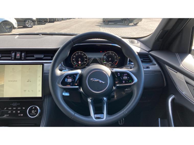 Jaguar F-Pace 2.0 P400e R-Dynamic SE Black 5dr Auto AWD Estate, , Vertu JLR Bolton are proud to offer this stunning Jaguar F-Pace 2.0 P400E R-Dynamic SE Black finished in Eiger Grey metallic with ebony leather interior. This one owner car has been immaculately looked after and comes with a great specification which includes black pack, , privacy glass, 20 inch diamond turned alloys, adaptive cruise control, 11.4 inch touchscreen with Pivi Pro Navigation, reverse camera, parking sensors, Apple car play, Pixel LED headlights, auto lights and wipers, DAB radio, Bluetooth, trip computer, Isofix, heated front seats, power tailgate, keyless entry, virtual cockpit, electric memory seats, heated windscreen, push button start, steering wheel audio controls and much more. This car is ready to view, test drive and drive away in today and comes as part of the Approved JLR programme which includes 12 months warranty, 12 months roadside assistance, MOT test warranty, and 165 multi point inspection as part of purchase.