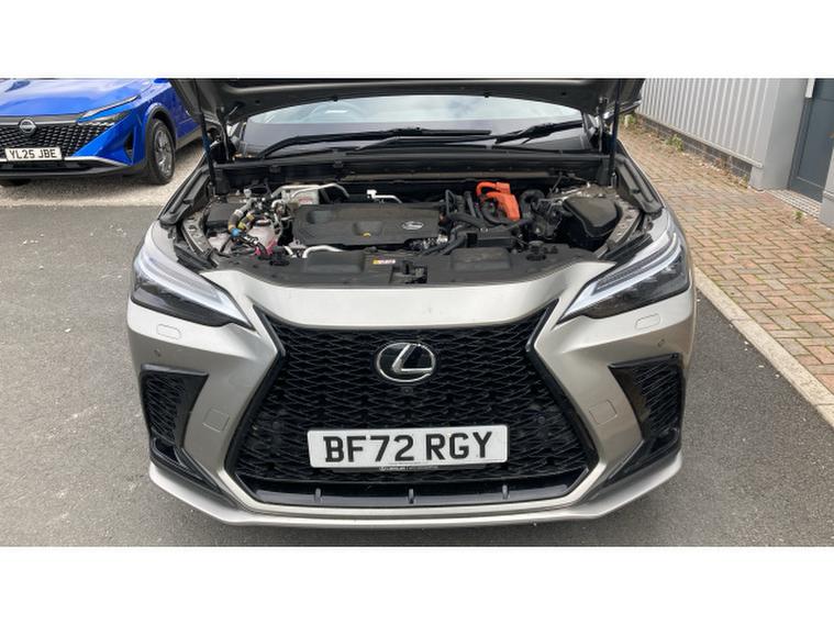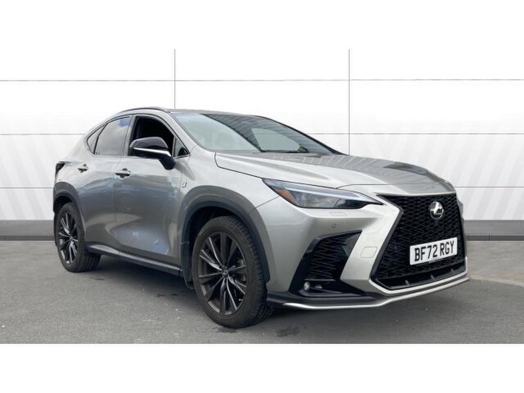 Lexus NX 450h+ 2.5 F-Sport 5dr E-CVT [Premium Plus Pack] Estate, , 2022 Lexus NX Estate 450h+ 2.5 F-Sport Premium Plus Pack blends plug-in hybrid efficiency with sporty luxury and generous tech.A 2.5 litre petrol plug-in hybrid with around 300 hp and full-time AWD delivers brisk acceleration (0-62 mph in about 6.3 s) while offering up to 35-40 miles of pure EV driving on a full charge.It offers a refined cabin, smart entry and touch-free power tailgate, 60/40 rear folding seats, wireless charging, multiple USB-C ports, and a well-executed balance of EV-mode economy and usable luggage space for everyday family and city use.In short, the NX 450h+ F-Sport Premium Plus is a high-end compact plug-in SUV that doesnt force you to sacrifice performance for efficiency and does so with elegance, safety tech and enough sport-scar flair to turn heads.